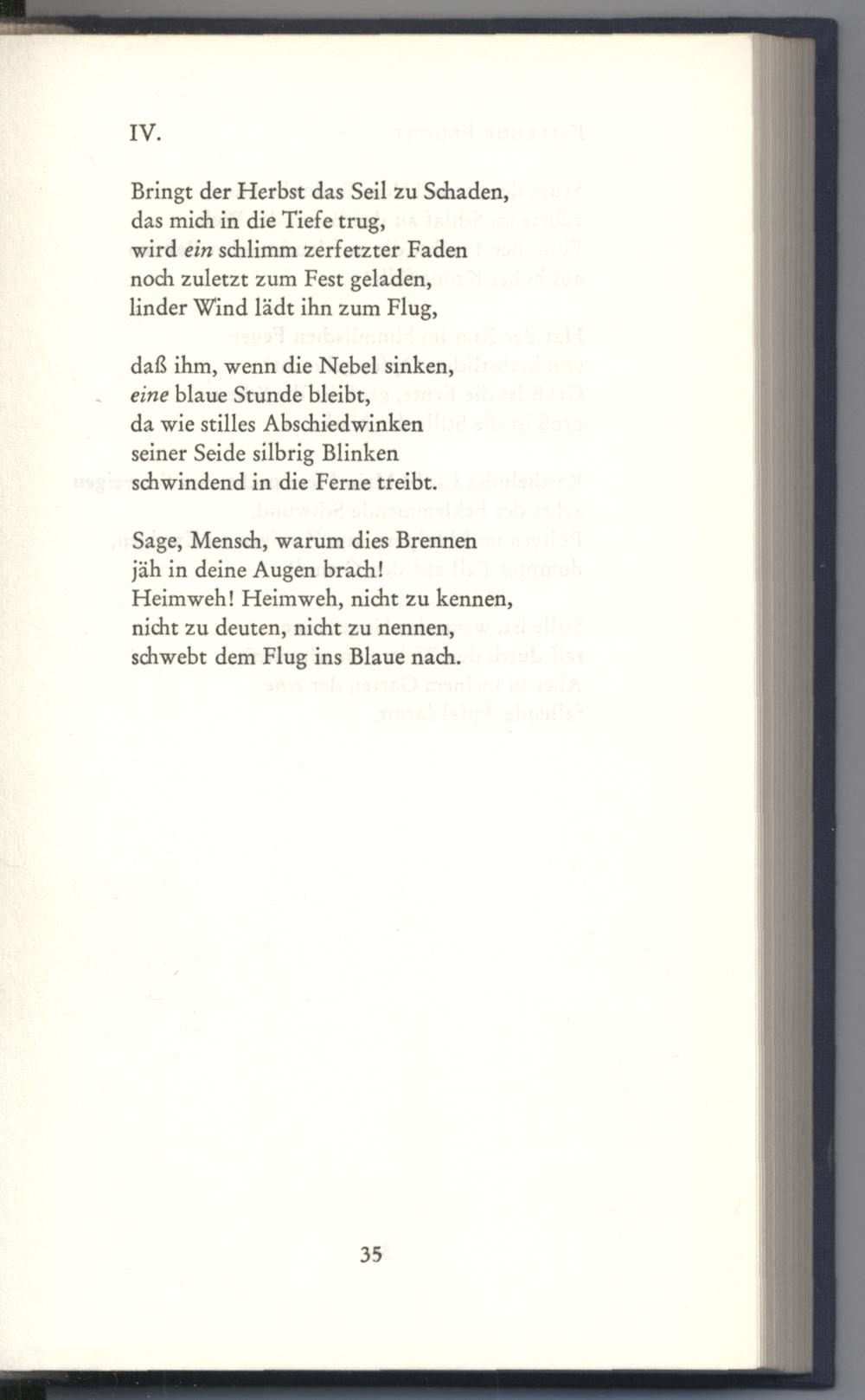 Heimweh! Heimweh, nicht zu kennen, nicht zu deuten, nicht zu nennen, schwebt dem Flug ins Blaue nach.
