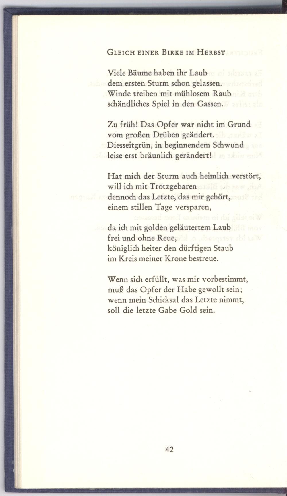 da ich mit golden geläutertem Laub frei und ohne Reue,