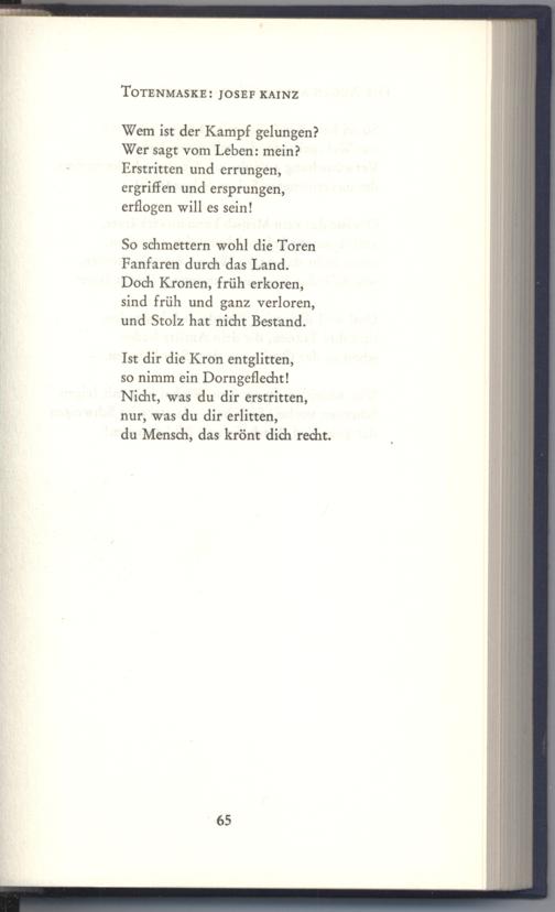 So schmettern wohl die Toren Fanfaren durch das Land. Doch Kronen, früh erkoren, sind früh und ganz verloren, und Stolz hat nicht Bestand.