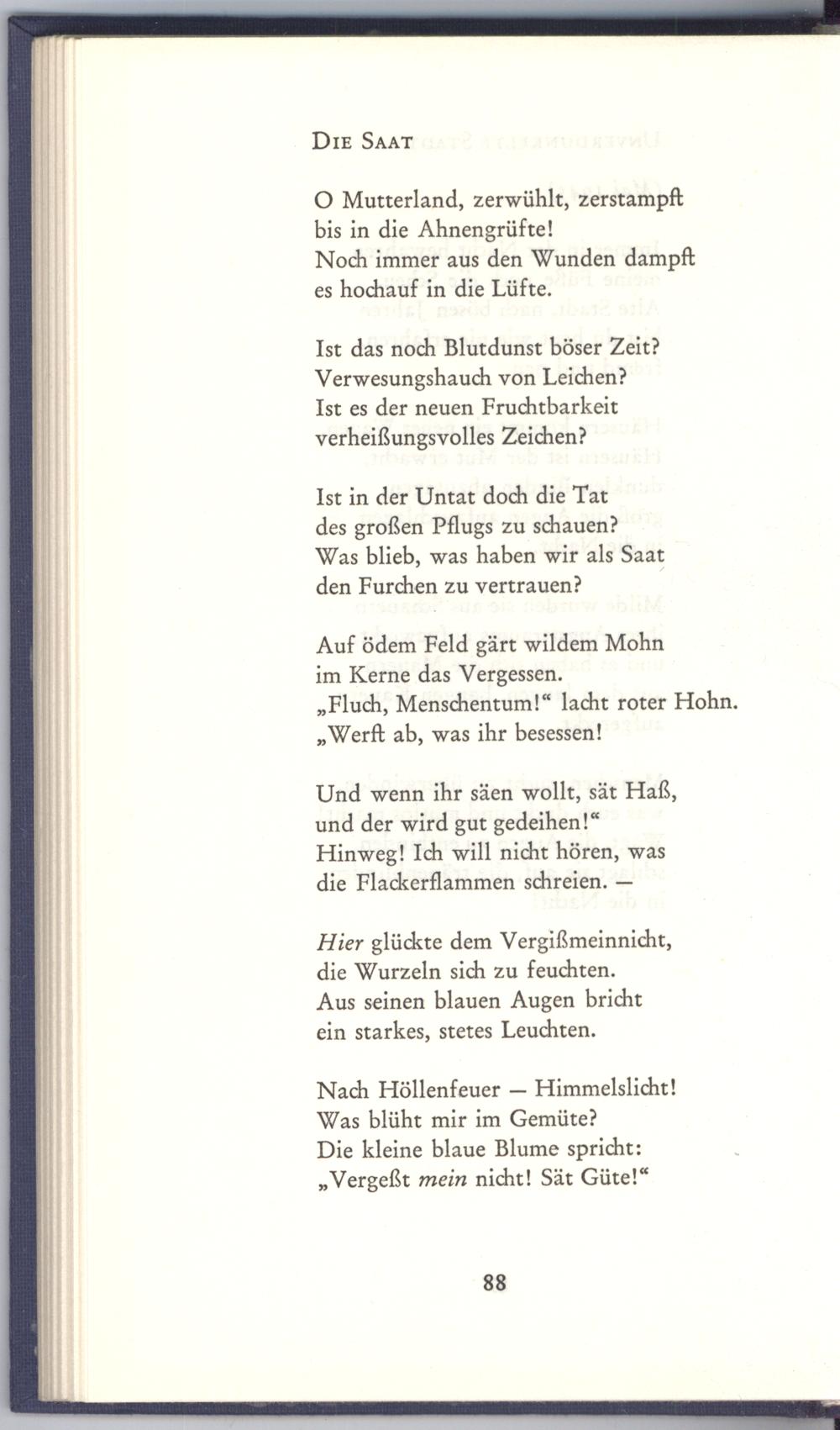 Und wenn ihr säen wollt, sät Haß, und der wird gut gedeihen!“ Hinweg! Ich will nicht hören, was die Flackerflammen schreien.—