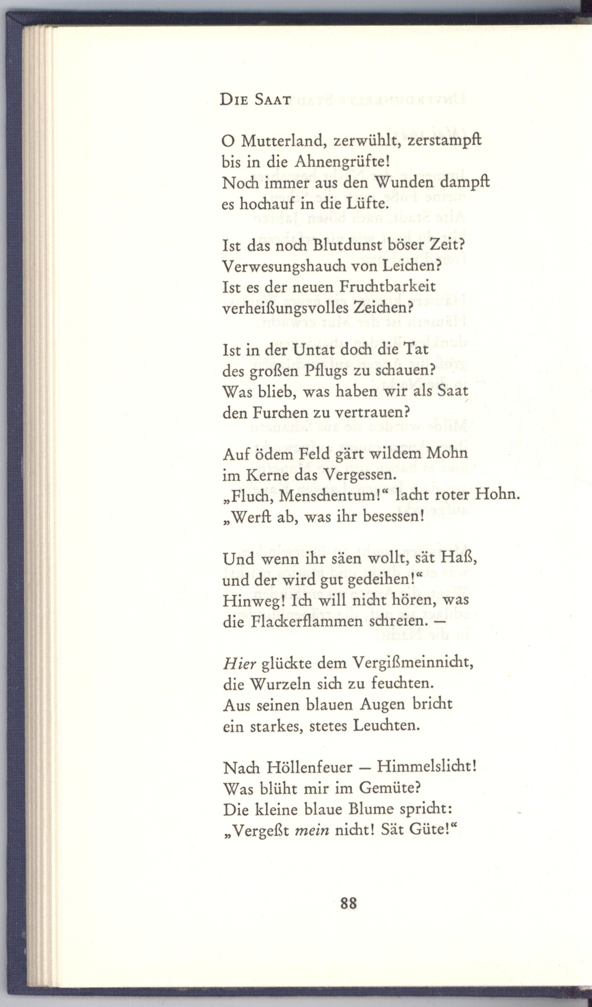des großen Pflugs zu schauen? Was blieb, was haben wir als Saat den Furchen zu vertrauen?