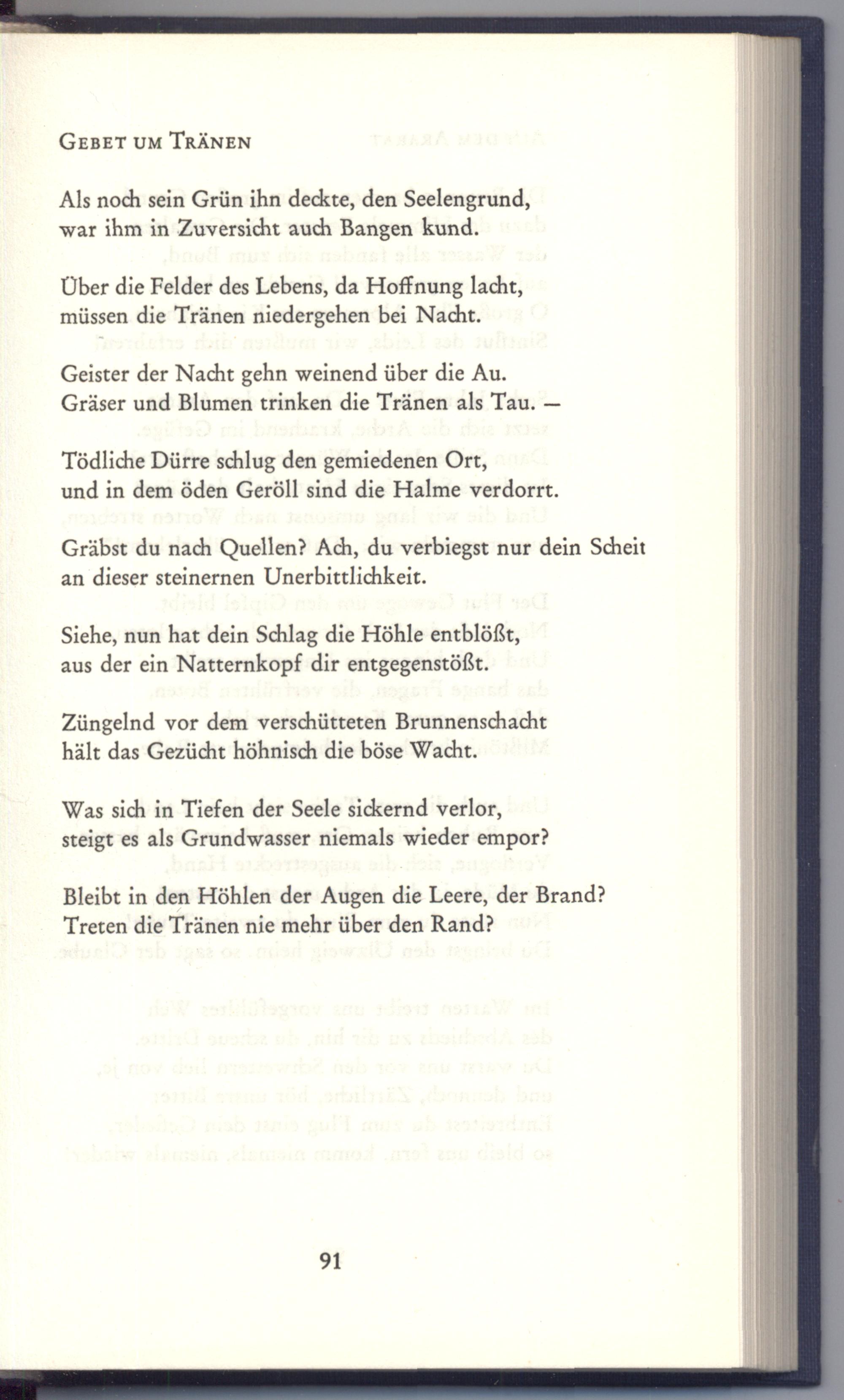 Bleibt in den Höhlen der Augen die Leere, der Brand? Treten die Tränen nie mehr über den Rand?