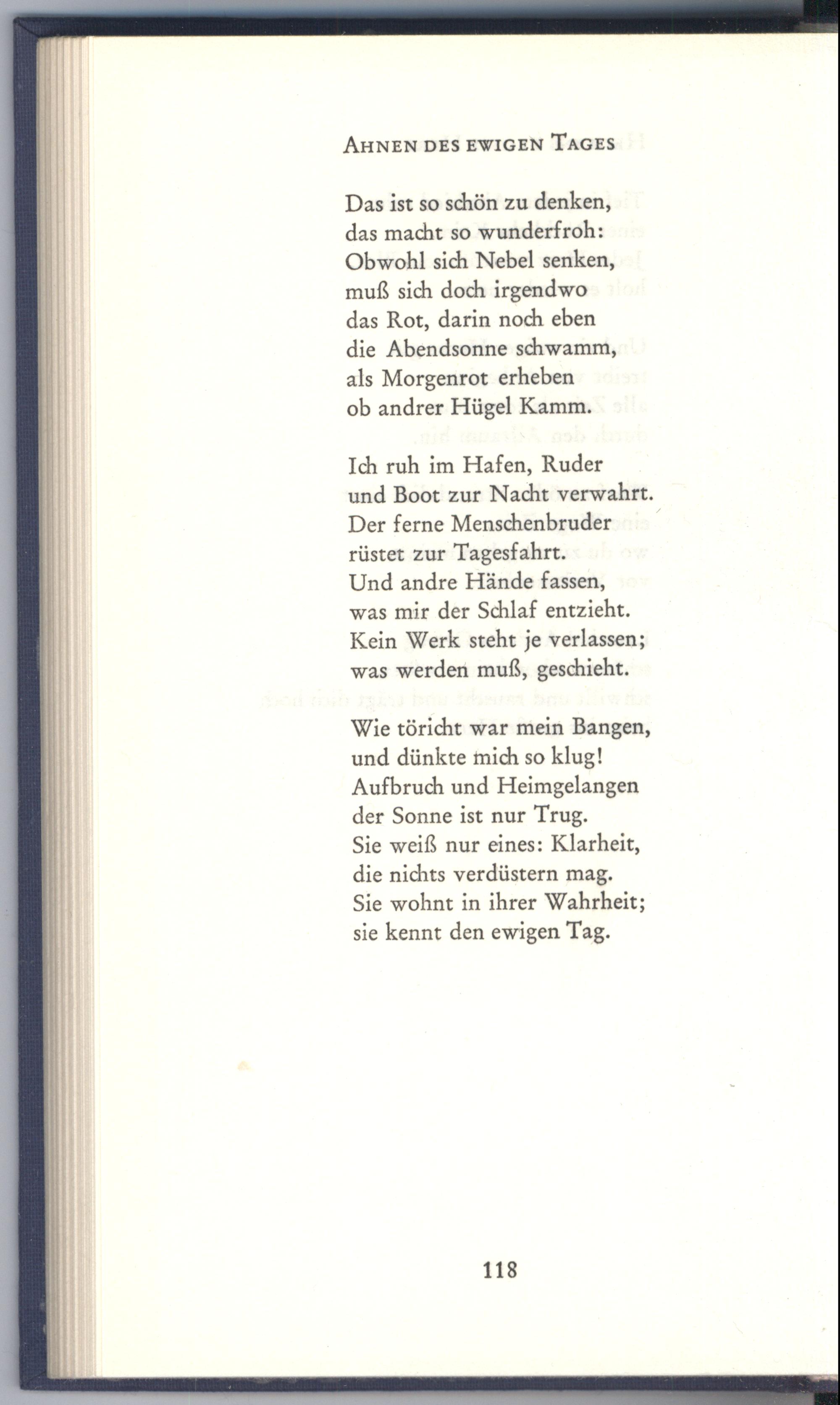 Wie töricht war mein Bangen, und dünkte mich so klug! Aufbruch und Heimgelangen der Sonne ist nur Trug.