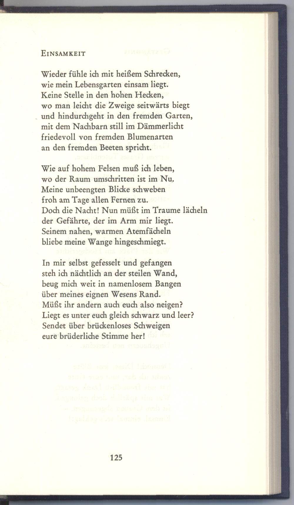 Wieder fühle ich mit heißem Schrecken, wie mein Lebensgarten einsam liegt.
