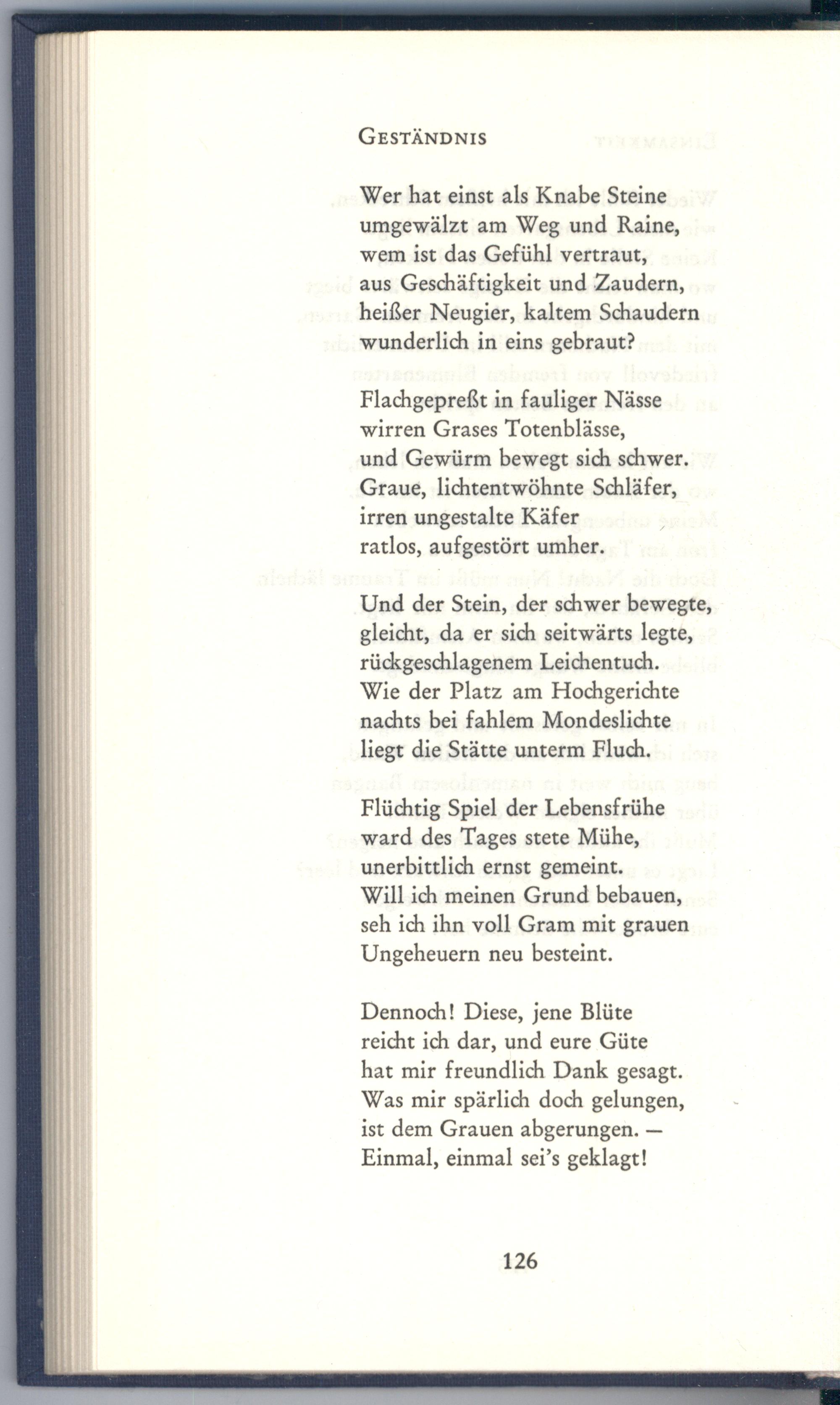 Dennoch! Diese, jene Blüte reicht ich dar, und eure Güte hat mir freundlich Dank gesagt. Was mir spärlich doch gelungen, ist dem Grauen abgerungen.— Einmal, einmal sei’s geklagt!