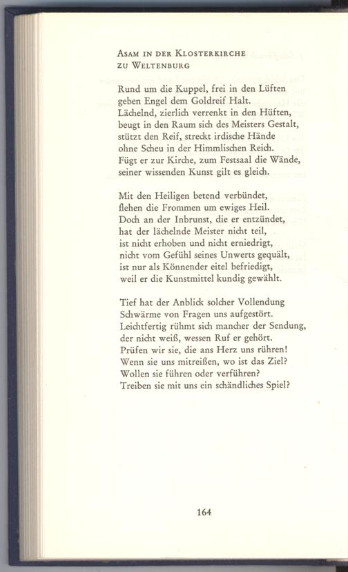 Tief hat der Anblick solcher Vollendung Schwärme von Fragen uns aufgestört. Leichtfertig rühmt sich mancher der Sendung, der nicht weiß, wessen Ruf er gehört.