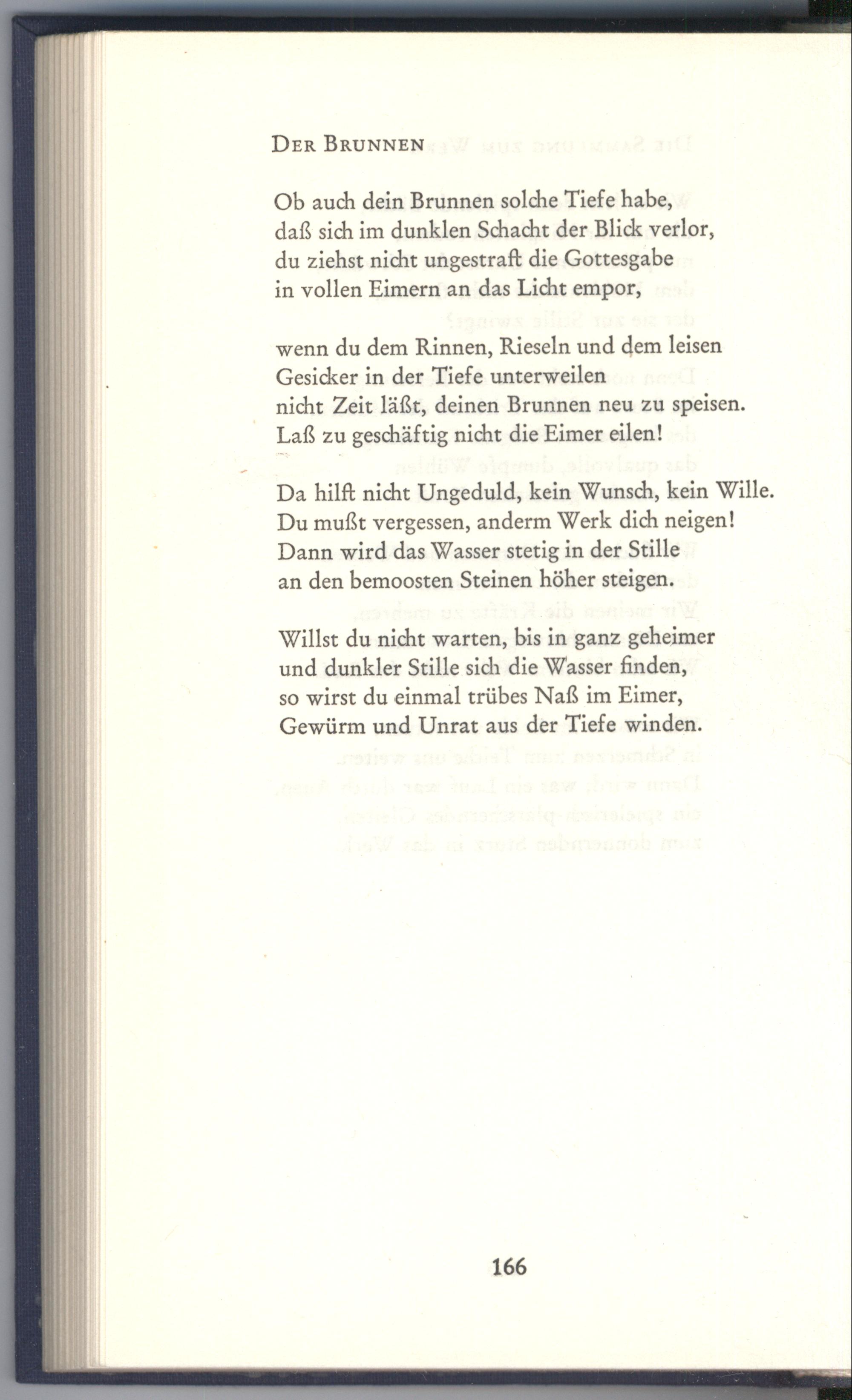 Ob auch dein Brunnen solche Tiefe habe, daß sich im dunklen Schacht der Blick verlor, du ziehst nicht ungestraft die Gottesgabe