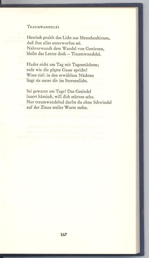 Nur traumwandelnd darfst du ohne Schwindel auf der Zinne steiler Worte stehn.