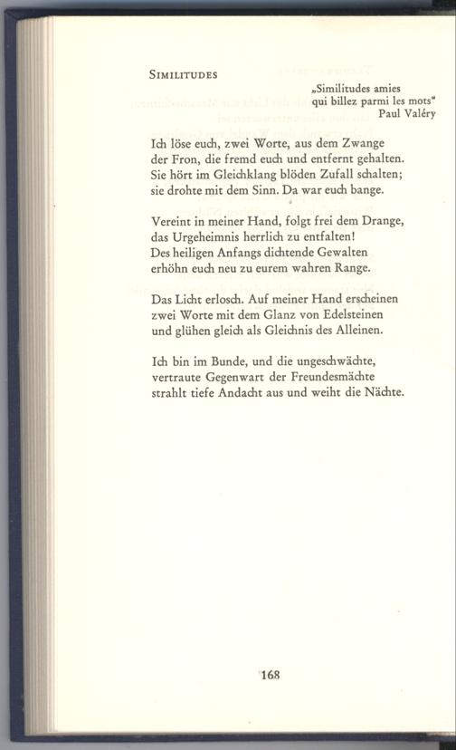 Das Licht erlosch. Auf meiner Hand erscheinen zwei Worte mit dem Glanz von Edelsteinen und glühen gleich als Gleichnis des Alleinen.