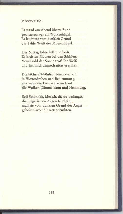 Es stand am Abend überm Sund gewitterschwer ein Wolkenhügel. Es leuchtete vom dunklen Grund das fahle Weiß der Möwenflügel.