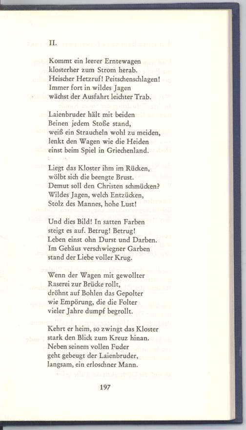 Kommt ein leerer Erntewagen klosterher zum Strom herab. Heischer Hetzruf! Peitschenschlagen! Immer fort in wildes Jagen