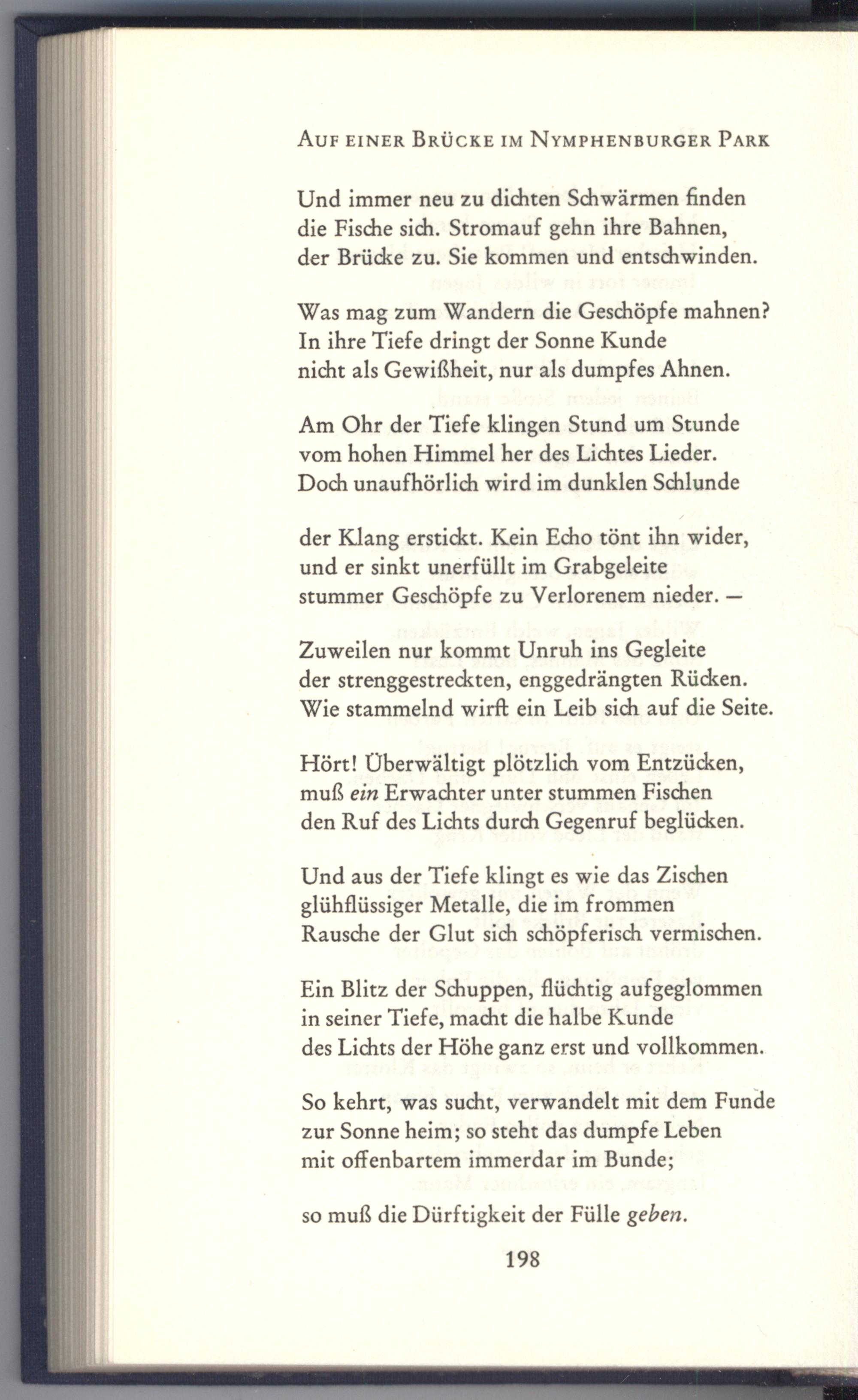 Am Ohr der Tiefe klingen Stund um Stunde vom hohen Himmel her des Lichtes Lieder. Doch unaufhörlich wird im dunklen Schlunde