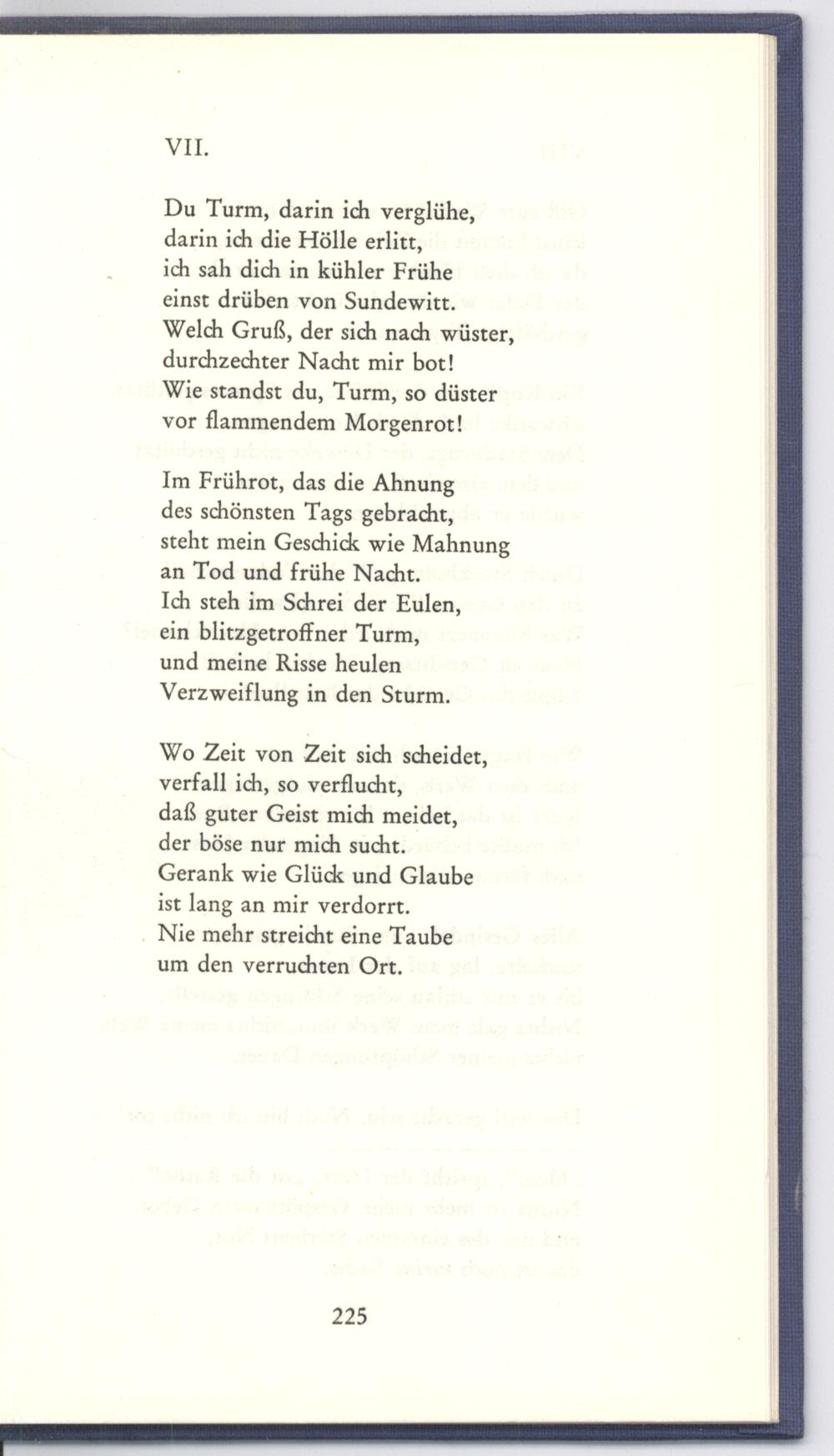 Du Turm, darin ich verglühe, darin ich die Hölle erlitt,