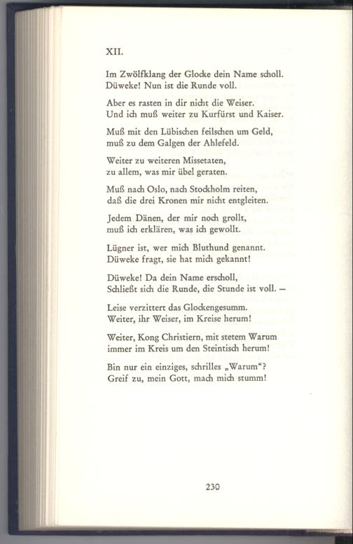 Im Zwölfklang der Glocke dein Name scholl. Düweke! Nun ist die Runde voll.