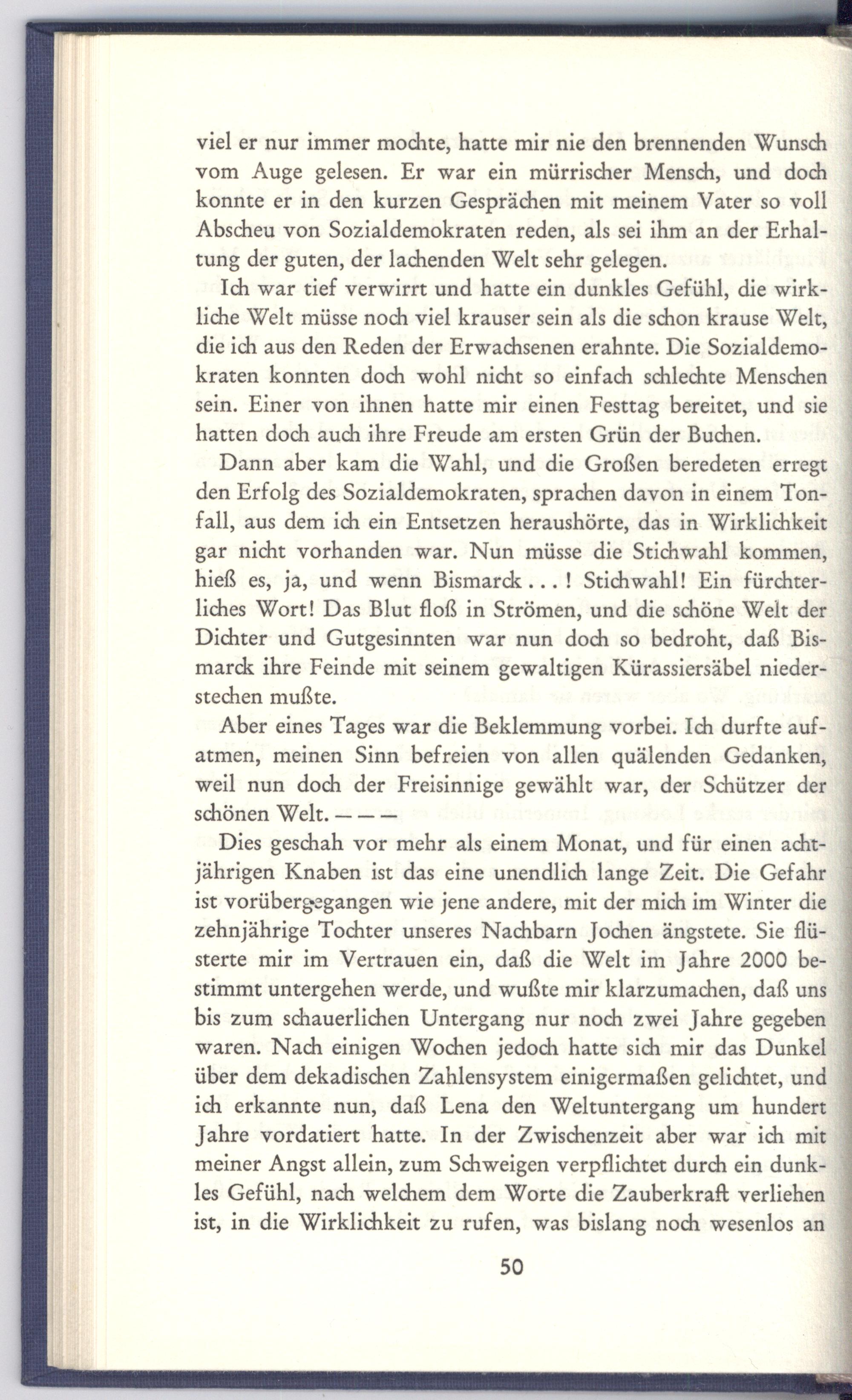 die ich aus den Reden der Erwachsenen erahnte. Die Sozialdemokraten konnten doch wohl nicht so einfach schlechte Menschen sein. Einer von ihnen hatte mir einen Festtag bereitet, und sie hatten doch auch ihre Freude am ersten Grün der Buchen.