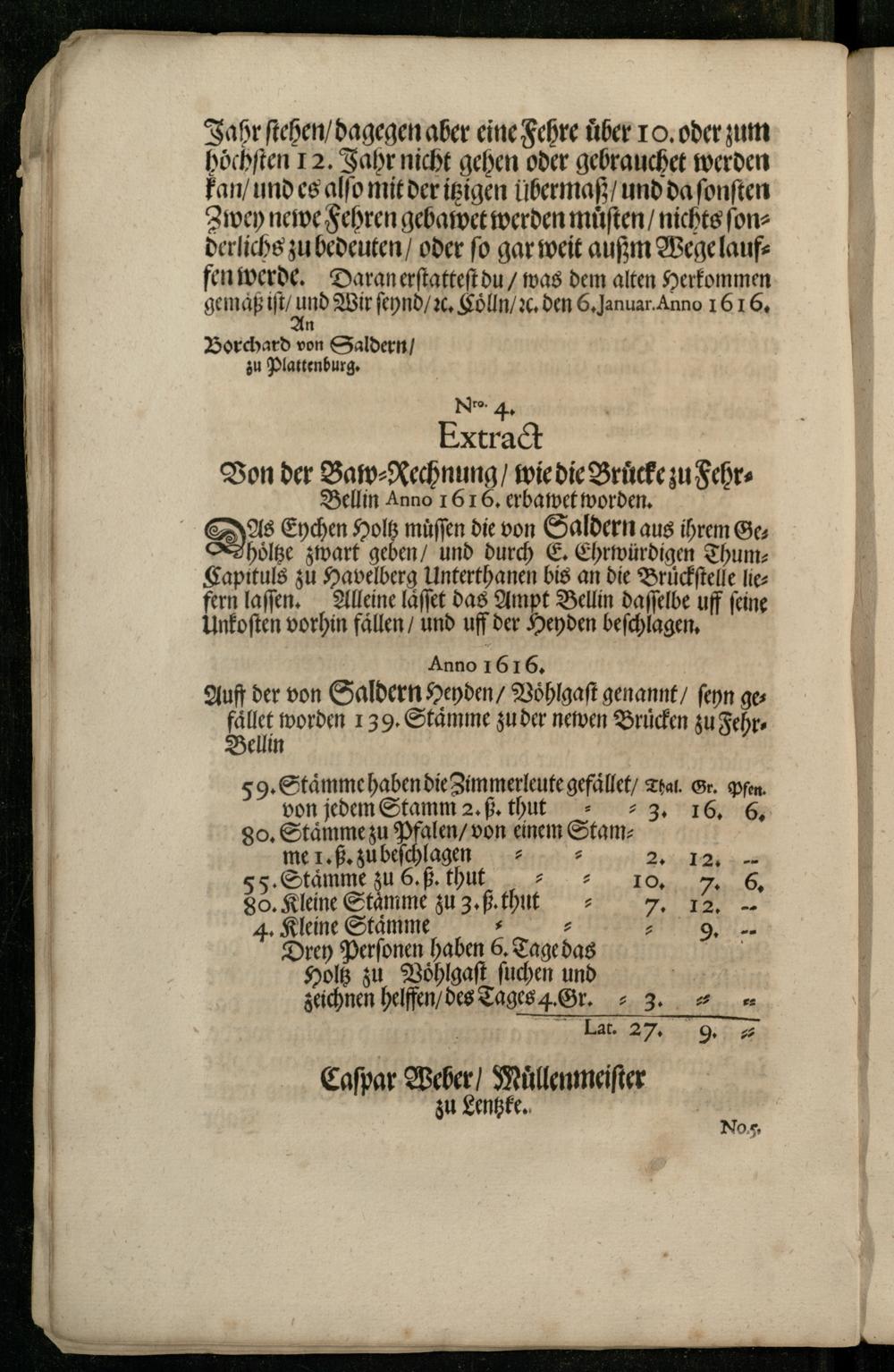 Von der Baw⸗RNechnung/ wie die Brücke zu FehrBellin Anno 1616. erbawet worden.