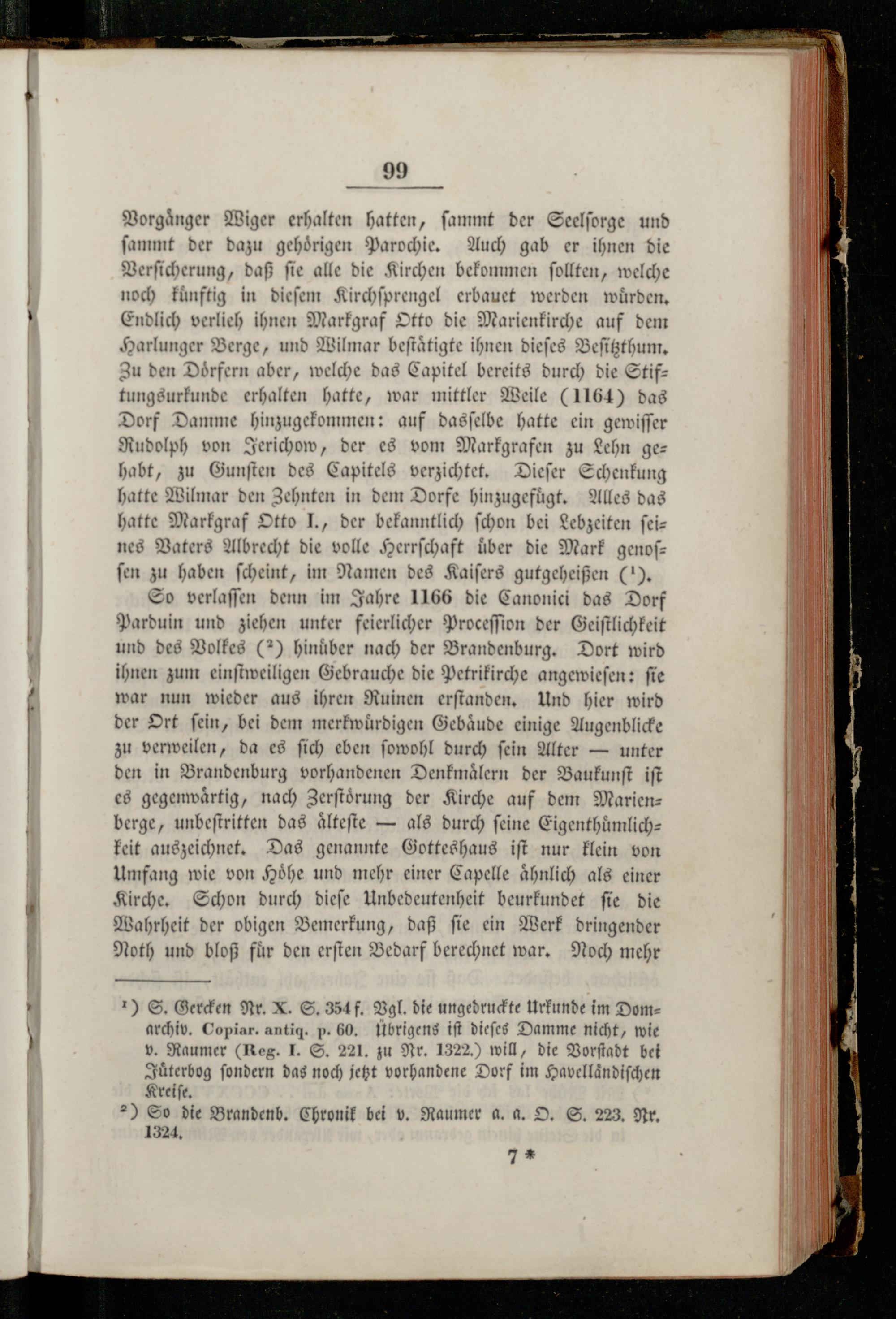 ) S. Gercken Nr. X. S. 354 f. Vgl. die ungedruckte Urkunde im Domarchiv. Copiar. antiq. p. 60, Übrigens iſt dieſes Damme nicht, wie v. Raumer(Reg. J. S. 221. zu Nr. 1322.) will, die Vorſtadt bei Juͤterbog ſondern das noch jetzt vorhandene Dorf im Havellaͤndiſchen Kreiſe.