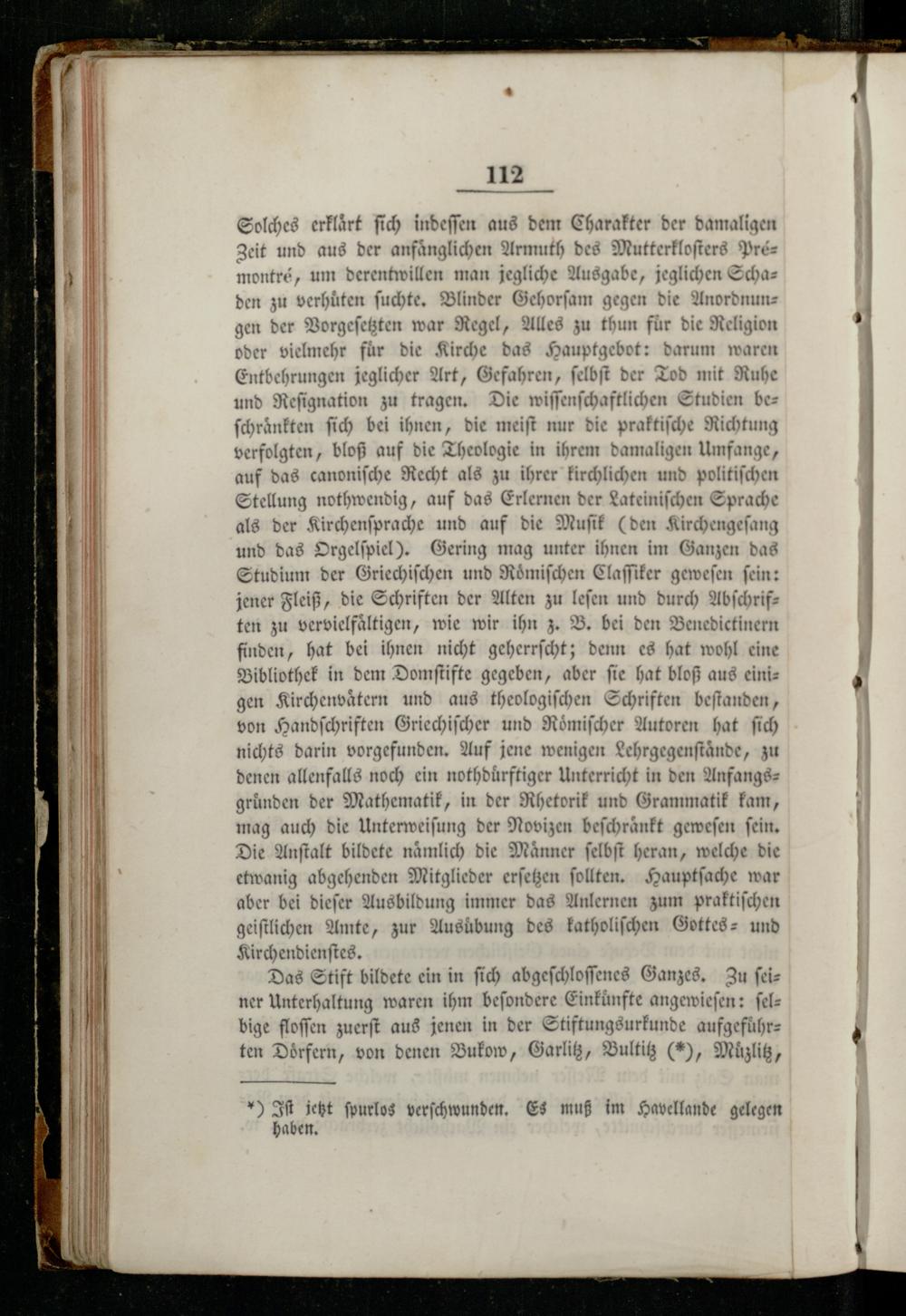 Solches erklaͤrt ſich indeſſen aus dem Charakter der damaligen Zeit und aus der anfänglichen Armuth des Mutterkloſters Prémontré, um derentwillen man jegliche Ausgabe, jeglichen Schaden zu verhuͤten ſuchte. Blinder Gehorſam gegen die Anordnungen der Vorgeſetzten war Regel, Alles zu thun für die Religion oder vielmehr fuͤr die Kirche das Hauptgebot: darum waren Entbehrungen jeglicher Art, Gefahren, ſelbſt der Tod mit Ruhe und Reſignation zu tragen. Die wiſſenſchaftlichen Studien beſchraͤnkten ſich bei ihnen, die meiſt nur die praktiſche Richtung verfolgten, bloß auf die Theologie in ihrem damaligen Umfange, auf das canoniſche Recht als zu ihrer kirchlichen und politiſchen Stellung nothwendig, auf das Erlernen der Lateiniſchen Sprache als der Kirchenſprache und auf die Muſik(den Kirchengeſang und das Orgelſpiel). Gering mag unter ihnen im Ganzen das Studium der Griechiſchen und Roͤmiſchen Claſſiker geweſen ſein: jener Fleiß, die Schriften der Alten zu lefen und durch Abſchriften zu vervielfältigen, wie wir ihn z. B. bei den Benedictinern finden, hat bei ihnen nicht geherrſcht; denn es hat wohl eine Bibliothek in dem Domſtifte gegeben, aber ſie hat bloß aus einigen Kirchenvaͤtern und aus theologiſchen Schriften beſtanden, von Handſchriften Griechiſcher und Roͤmiſcher Autoren hat ſich nichts darin vorgefunden. Auf jene wenigen Lehrgegenſtaͤnde, zu denen allenfalls noch ein nothduͤ rftiger Unterricht in den Anfangsgründen der Mathematik, in der Rhetorik und Grammatik kam, mag auch die Unterweiſung der Novizen beſchraͤnkt geweſen ſein. Die Anſtalt bildete nämlich die Männer ſelbſt heran, welche die etwanig abgehenden Mitglieder erſetzen ſollten. Hauptſache war aber bei dieſer Ausbildung immer das Anlernen zum praktiſchen geiſtlichen Amte, zur Ausübung des katholiſchen Gottes⸗ und Kirchendienſtes.