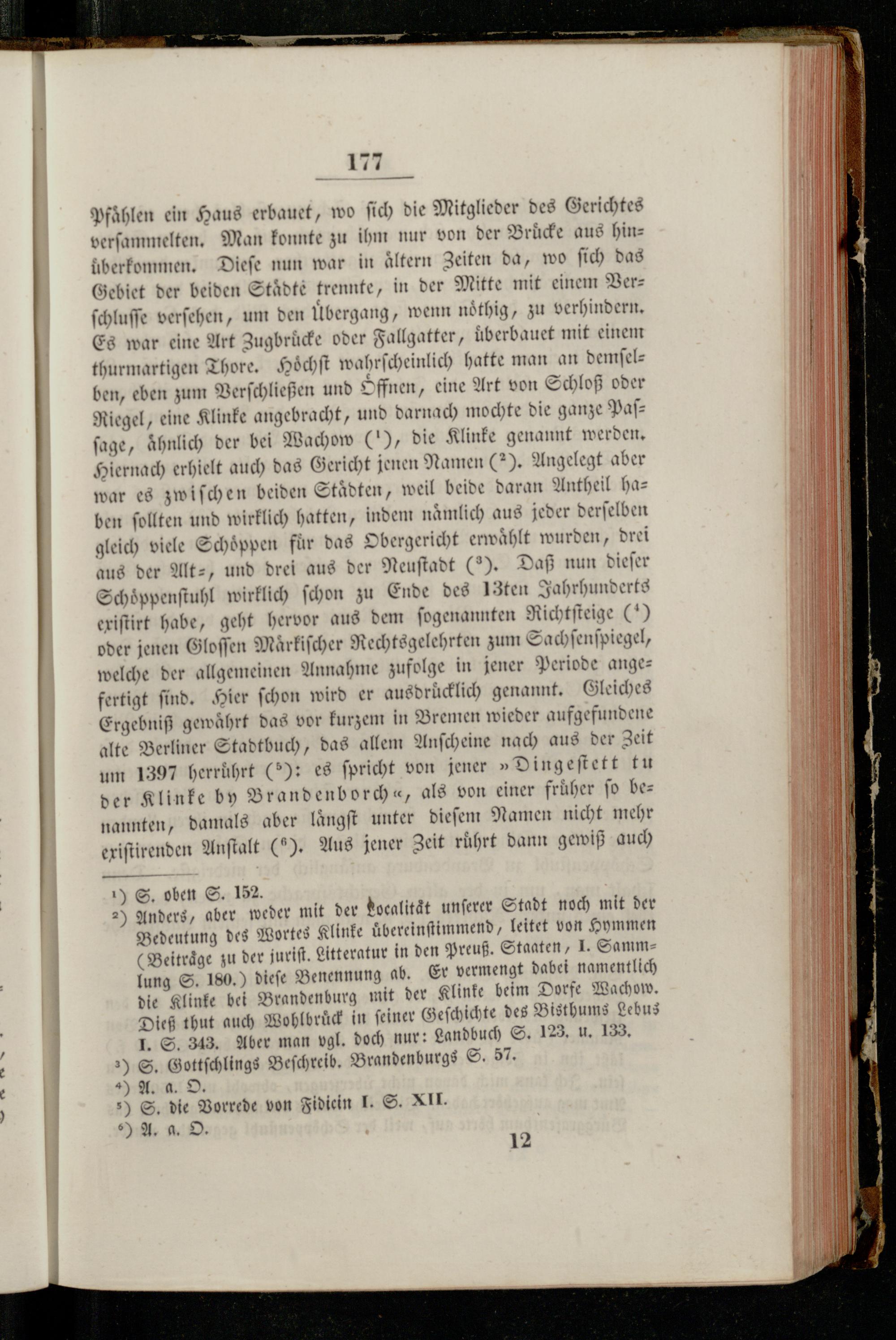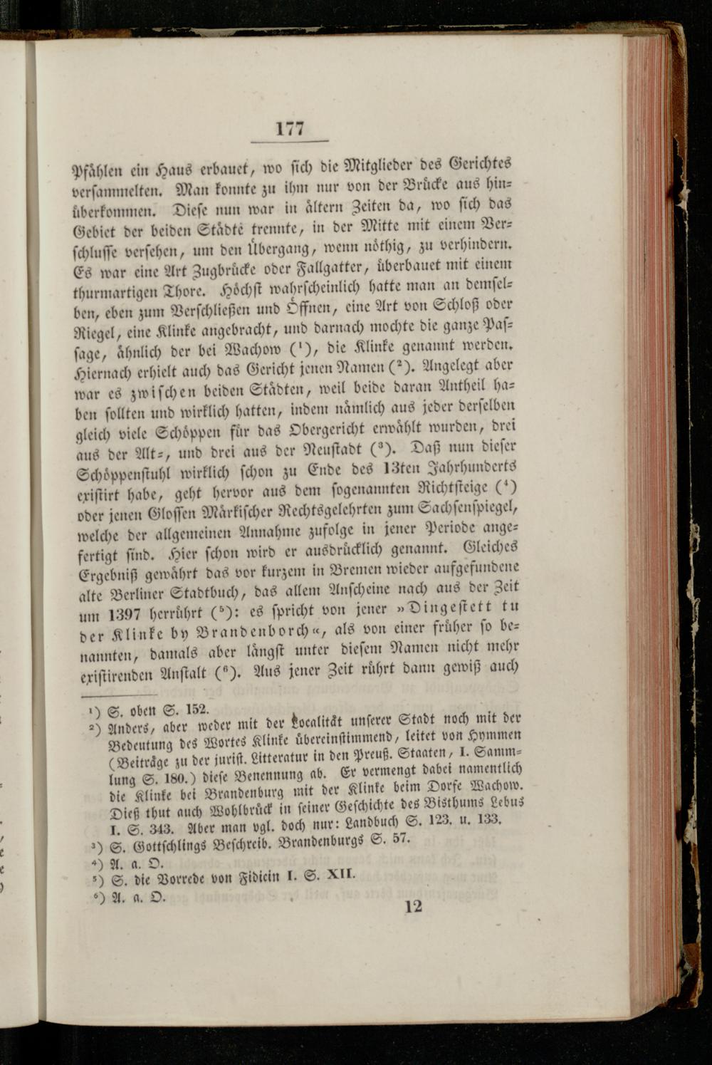 2) Anders, aber weder mit der Localitaͤt unſerer Stadt noch mit der Bedeutung des Wortes Klinke uͤbereinſtimmend, leitet von Hmmen (Beiträge zu der juriſt. Litteratur in den Preuß. Staaten, J. Sammlung S. 180.) dieſe Benennung ab. Er vermengt dabei namentlich die Klinke bei Brandenburg mit der Klinke beim Dorfe Wachow. Dieß thut auch Wohlbruͤck in ſeiner Geſchichte des Bisthums Lebus J. S. 343. Aber man vgl. doch nur: Landbuch S. 123. u. 133.