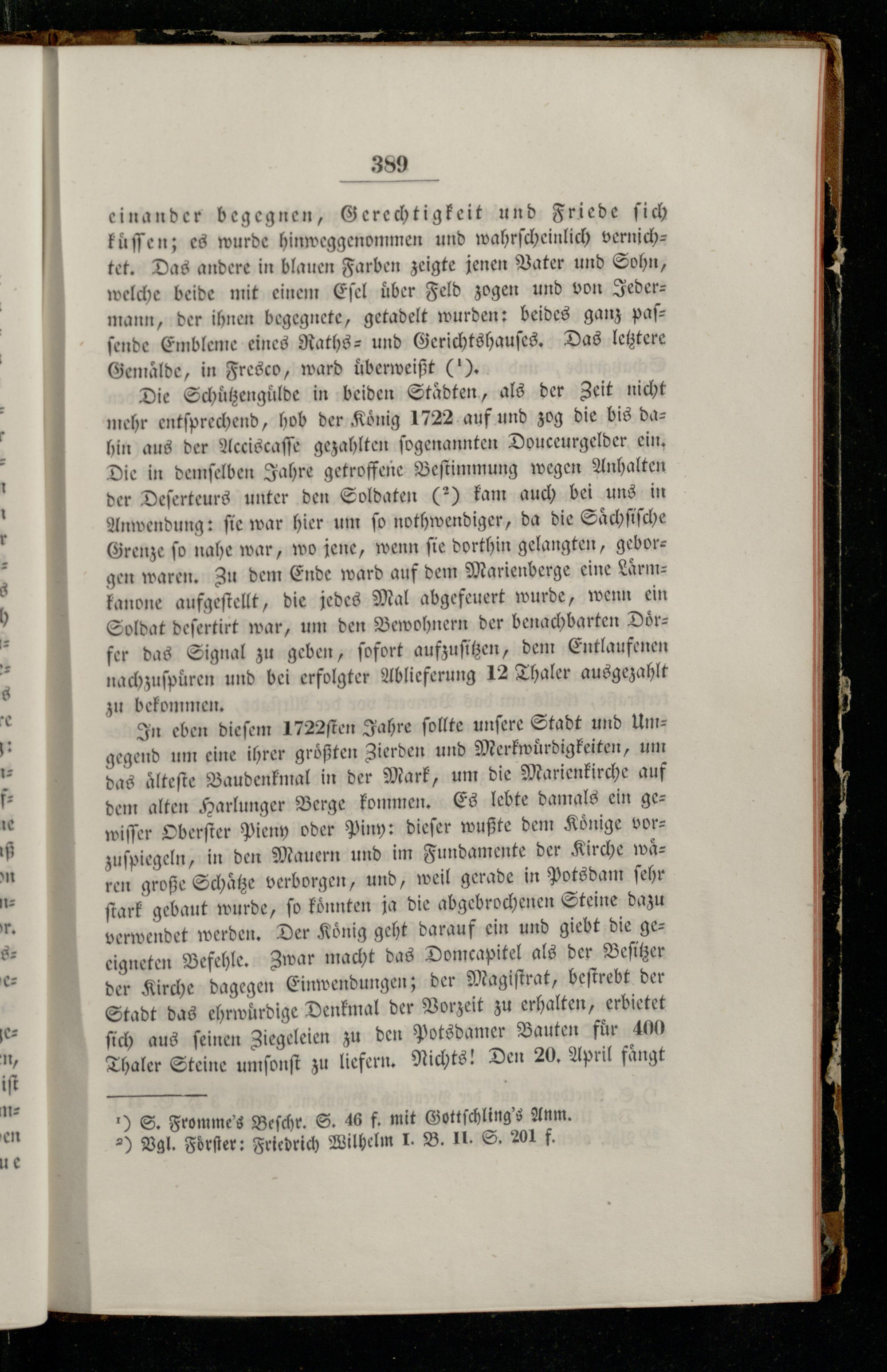 ) S. Fromme's Beſchr. S. 46 f. mit Gottſchling's Anm. 2) Vgl. Foͤrſter: Friedrich Wilhelm I. B. II. S. 201 f.