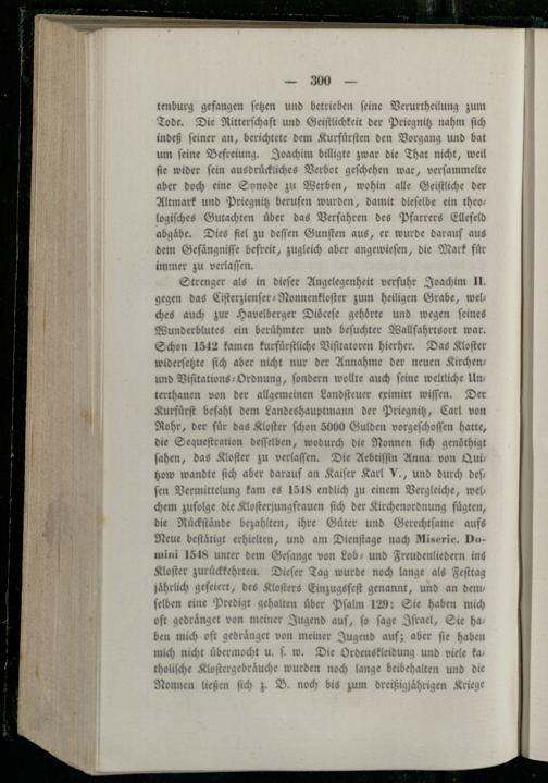 ches auch zur Havelberger Disceſe gehörte und wegen feines Wunderblutes ein berühmter und beſuchter Wallfahrtsort war. Schon 1512 kamen kurfuͤrſtliche Viſitatoren hierher. Das Kloſter widerſetzte ſich aber nicht nur der Annahme der neuen Kirchen— te auch ſeine weltliche Un