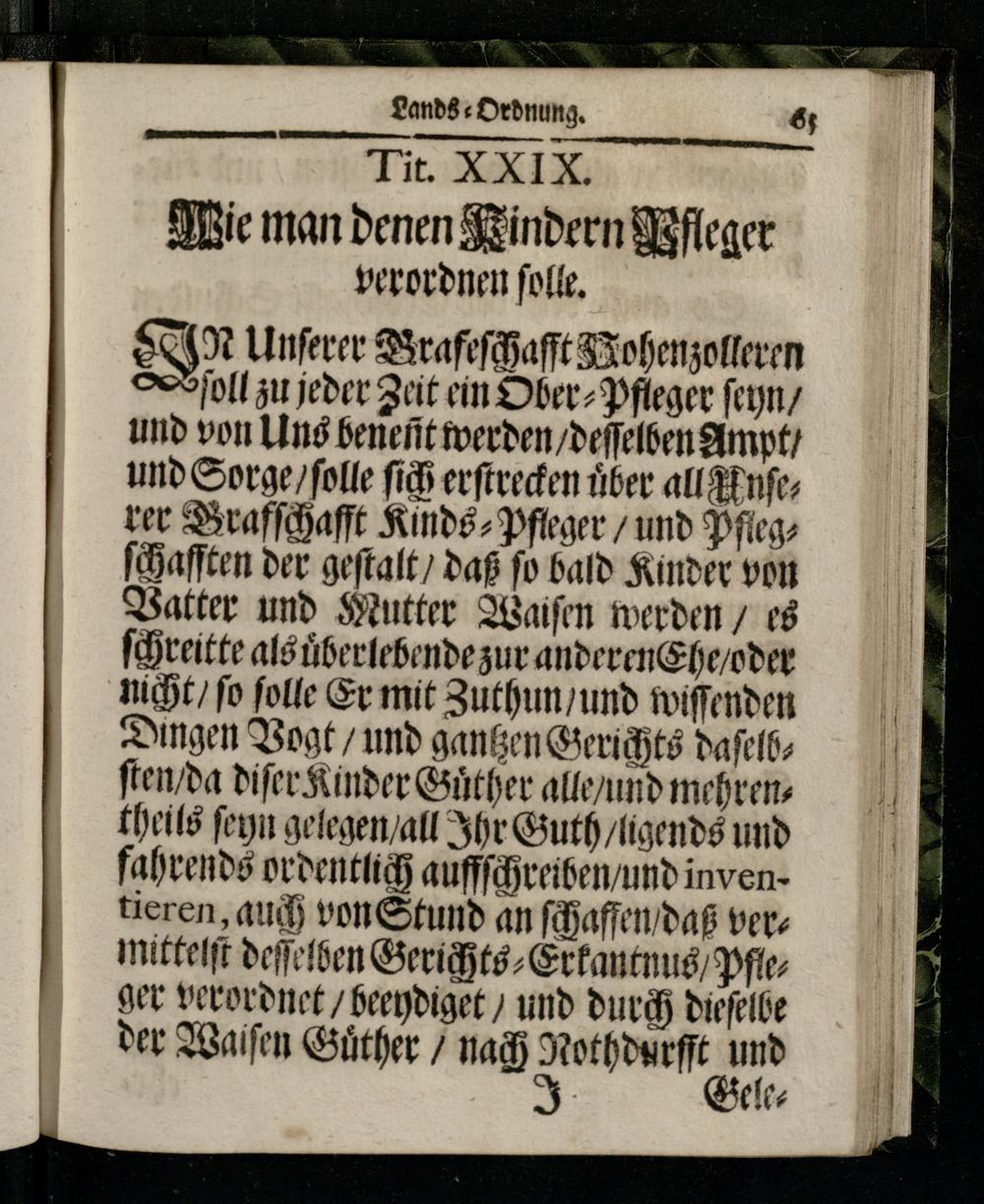 Lands: Ordnung. 65 Tit. XXIX. Wie man denen Rindern Mfleger