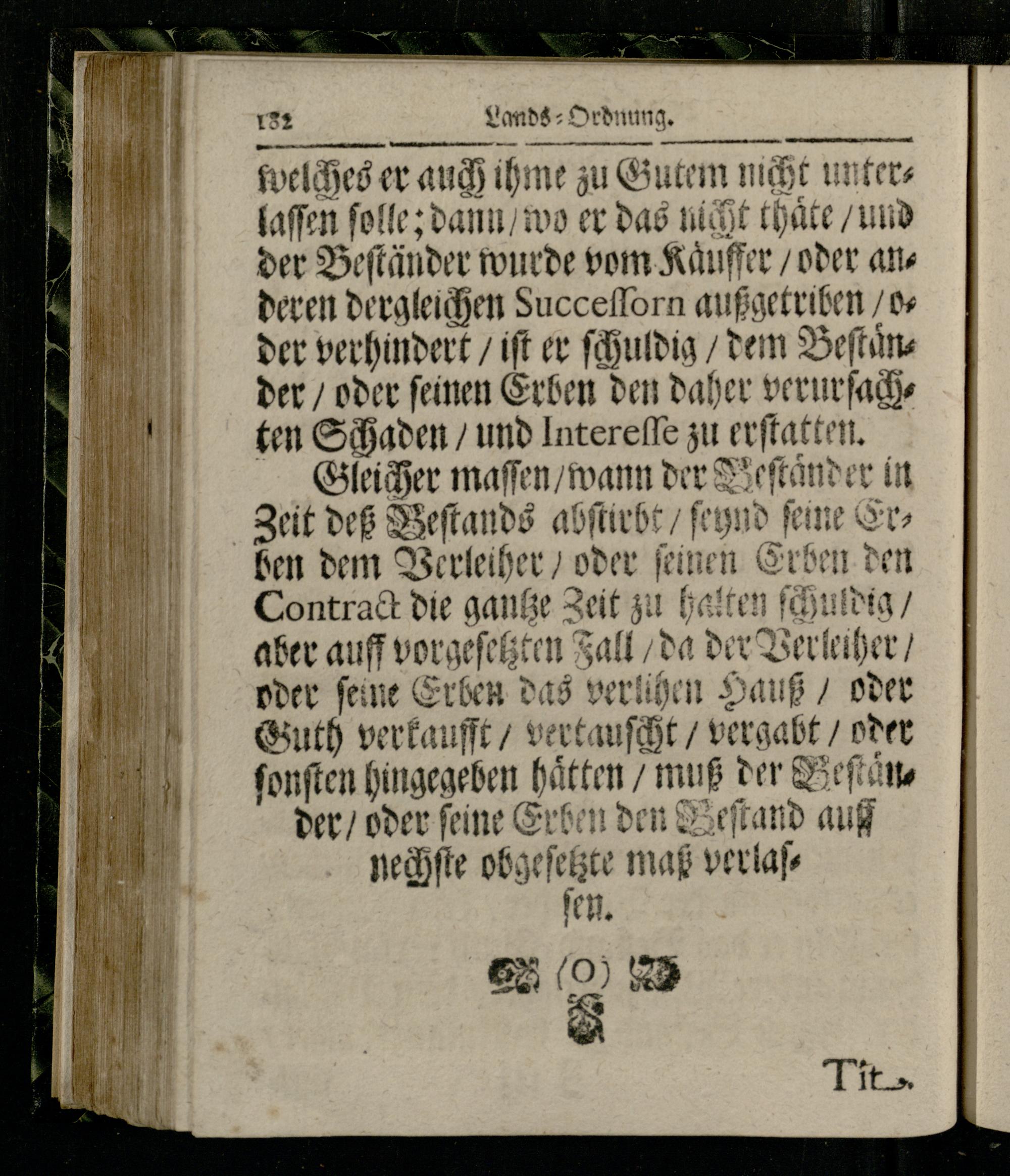 fe lches er. 60 Su em nicht unterlaſſen ſolle; dann/ wo er das nicht ſthaͤte/ und der Beſtänder wurde vom Kauffer/ oder anderen dergleichen Succeſſorn auß getriben/ oder verhindert/ iſt er ſchuldig/ dem Beſtaͤnder/ oder feinen Erben den daher verurſach