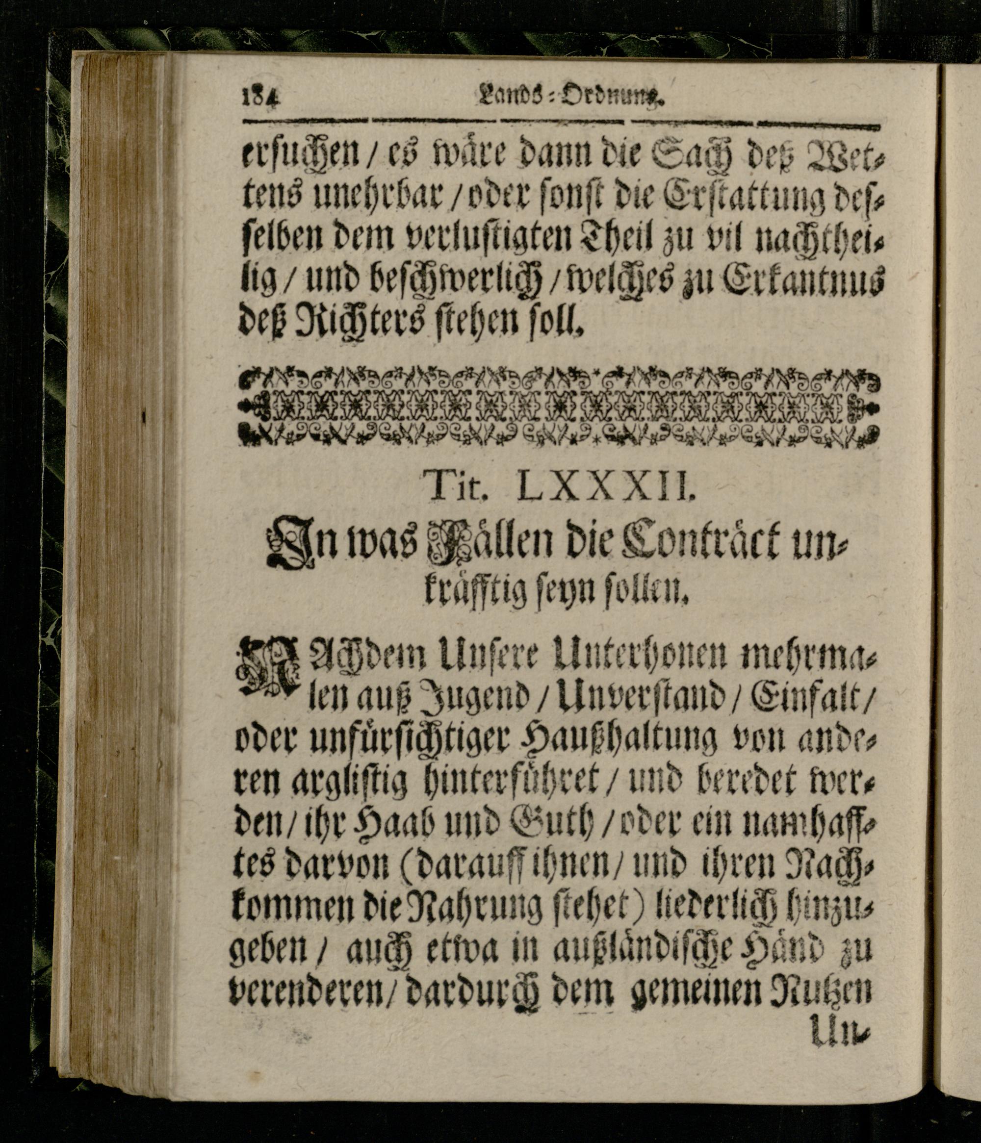 Ti. 1X* XI An was Raͤllen die Contraͤct un kraͤfftig ſeyn ſollen. * Achdem Unſere Unterhonen mehrma—len auß Jugend/ e,, Einfalt/ oder unfuͤrſichtiger Haußhaltung von anderen argliſtig gin erf wet/ und beredet werden/ ihr Haab und Guth/ oder ein namhafftes darvon(darauff ihnen/ und ihren Nachkommen die Nahrung fl ehet) liederlich h nnzugeben/ auch etwa in u ln ie B d zu