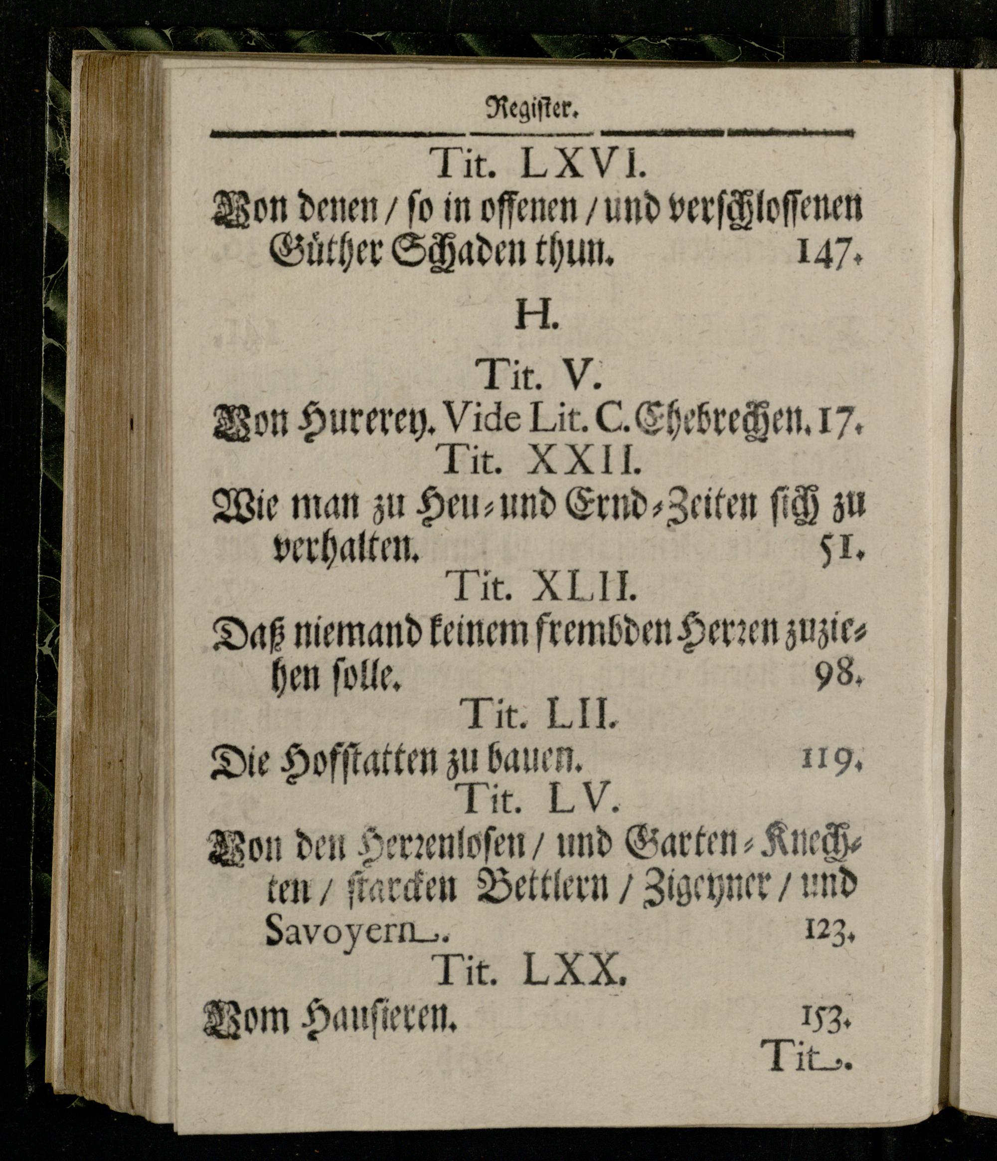 Fit V. Von Hurerey. Vide Lit. C. Chebreqhen. 17. Tit. XXI