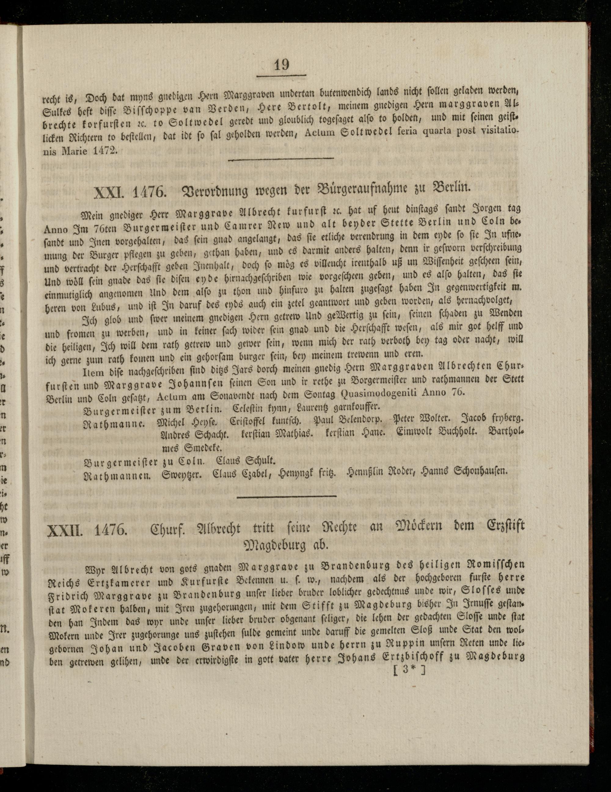 XXII. 1476. Churf. Albrecht tritt ſeine Rechte an Moͤckern dem Erzſtift Magdeburg ab.