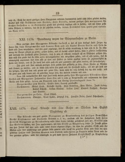 XXI 1476. Verordnung wegen der Buͤrgeraufnahme zu Berlin.
