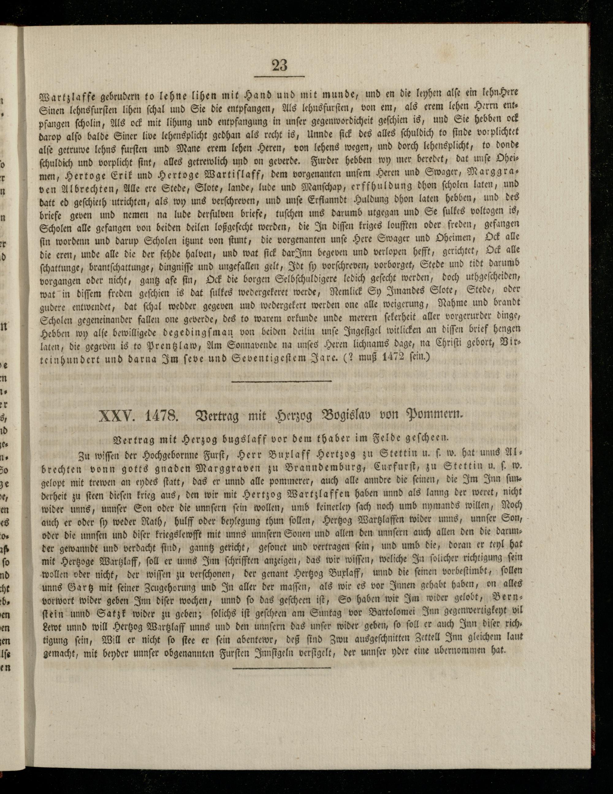 XXV. 1478. Vertrag mit Herzog Bogislav von Pommern.