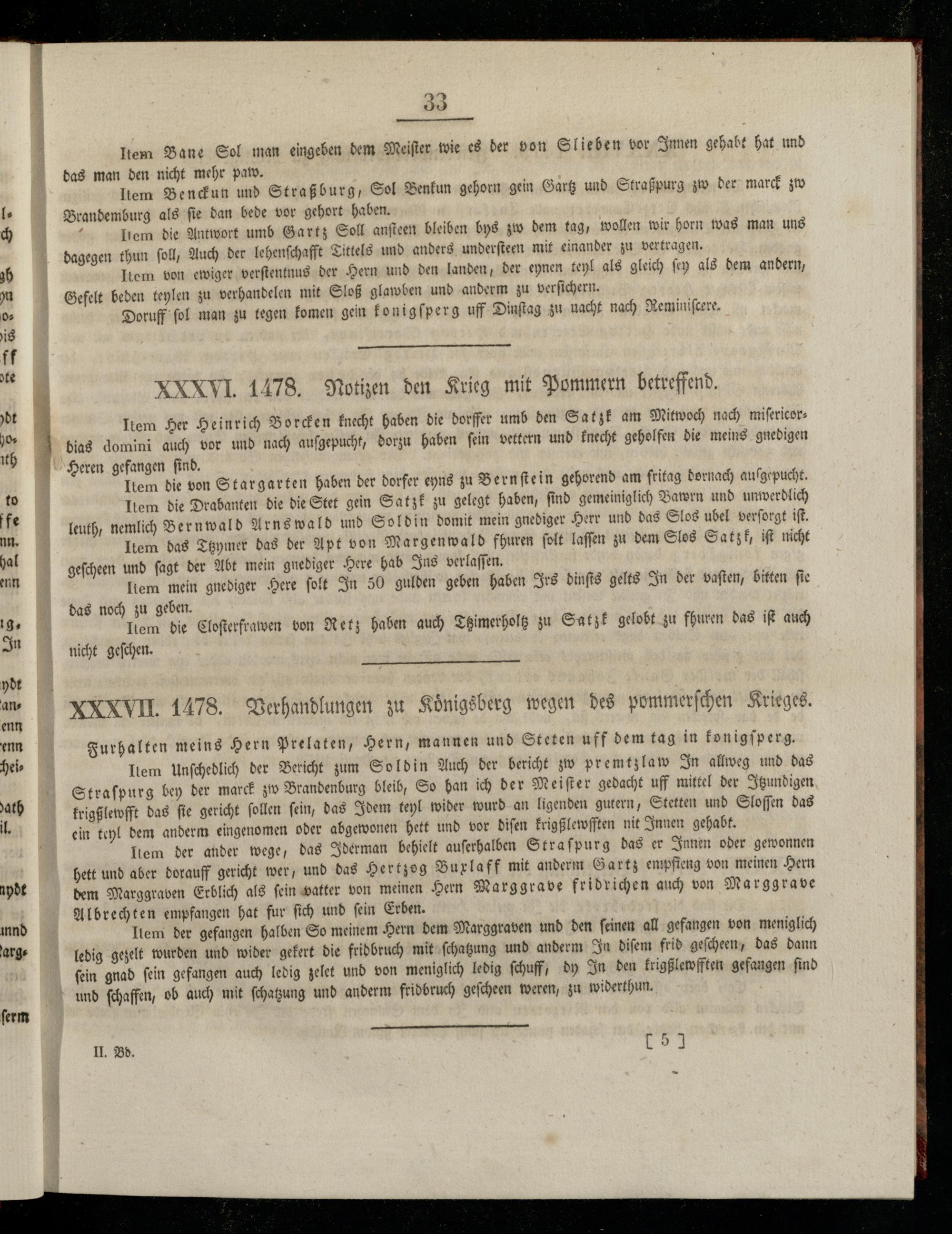 XXXVI. 1478. Notizen den Krieg mit Pommern betreffend.