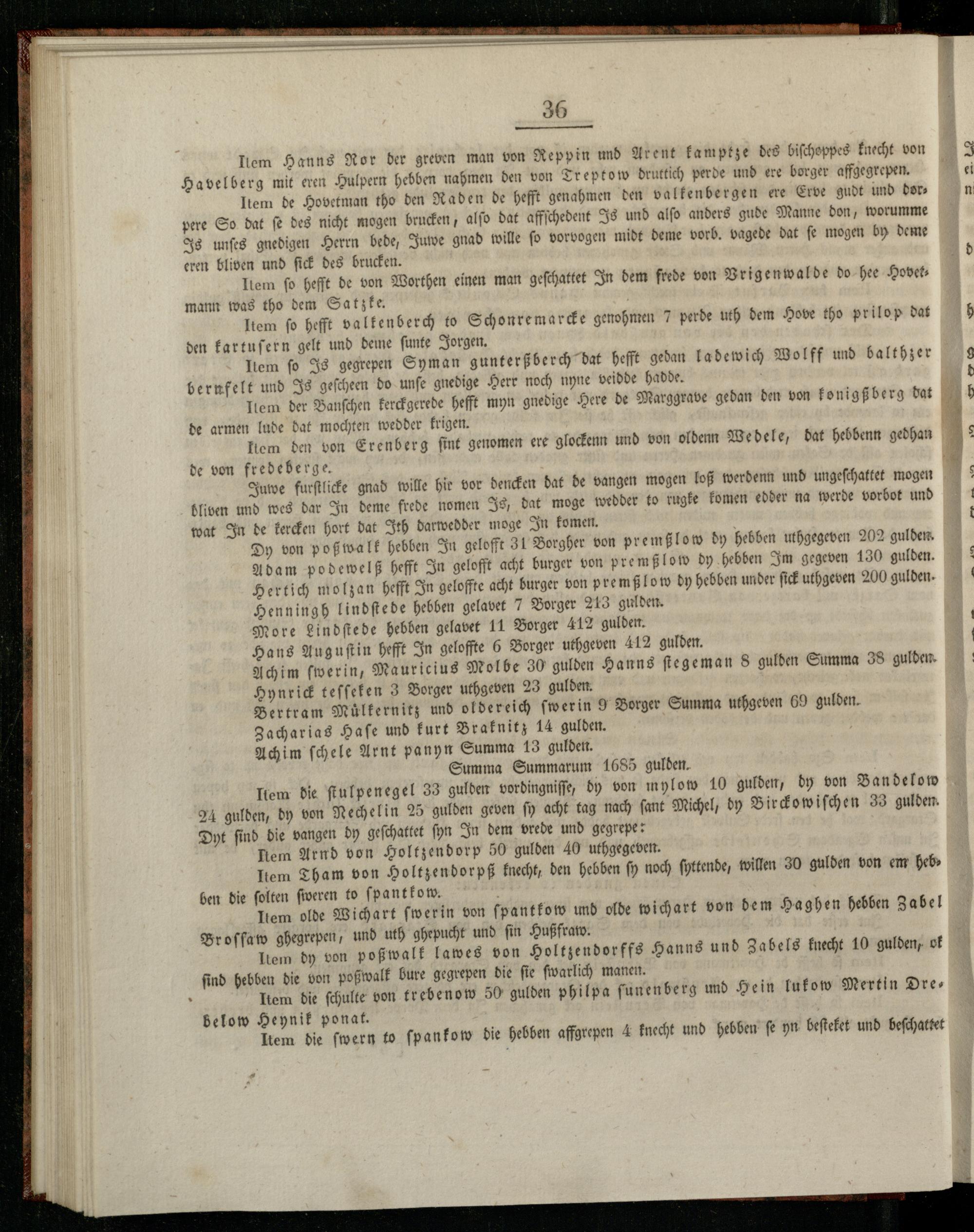 Item die ſtulpenegel 33 gulden vordingniſſe, dy von mylow 10 gulden, dy von Ban delow 24 gulden, dy von Nechelin 25 gulden geven ſy acht tag nach ſant Michel, by Birckowiſchen 33 gulden. Dyt ſind die vangen dy geſchattet ſyn In dem vrede und gegrepe: