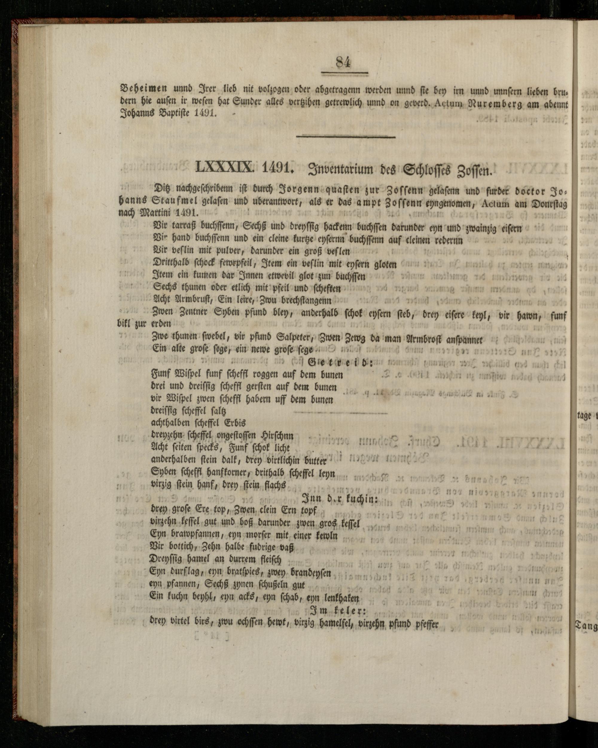 IXXXNX 1491. Inventarium des Schloſſes Zoſſen.