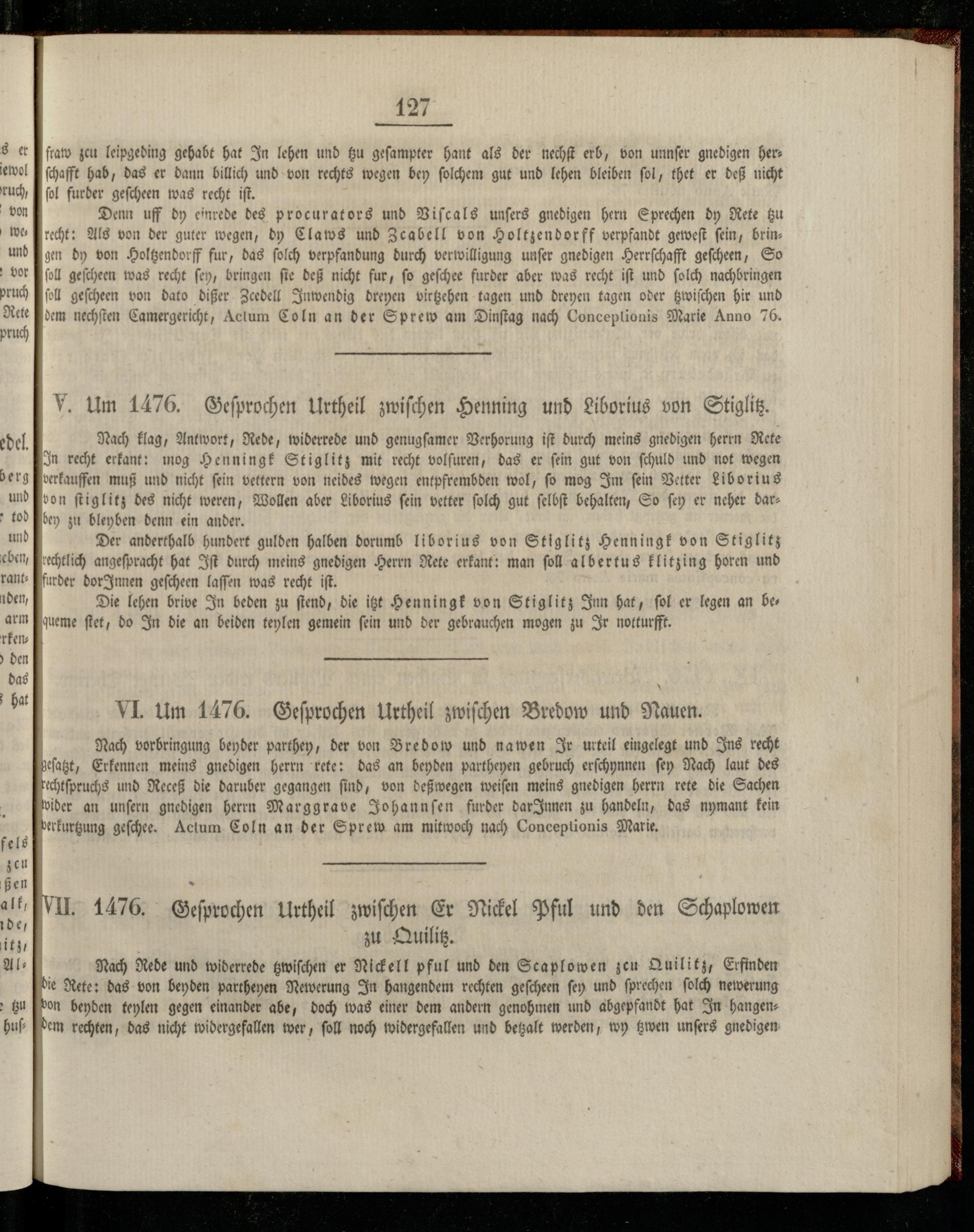 VI. Um 1476. Geſprochen Urtheil zwiſchen Bredow und Nauen.