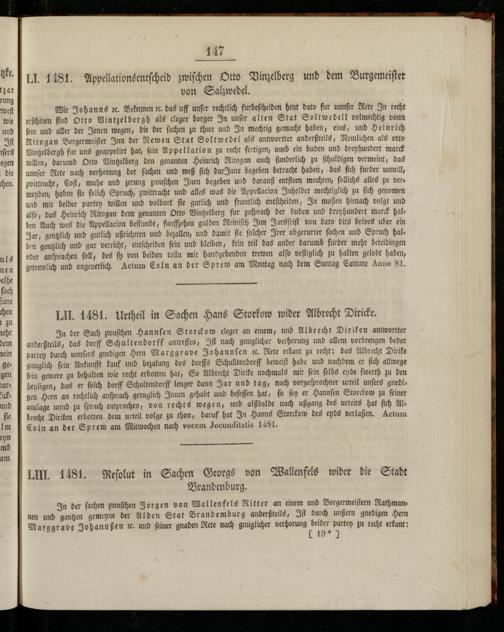 II. 1481. Appellationsentſcheid zwiſchen Otto Vinzelberg und dem Burgemeiſter von Salzwedel.