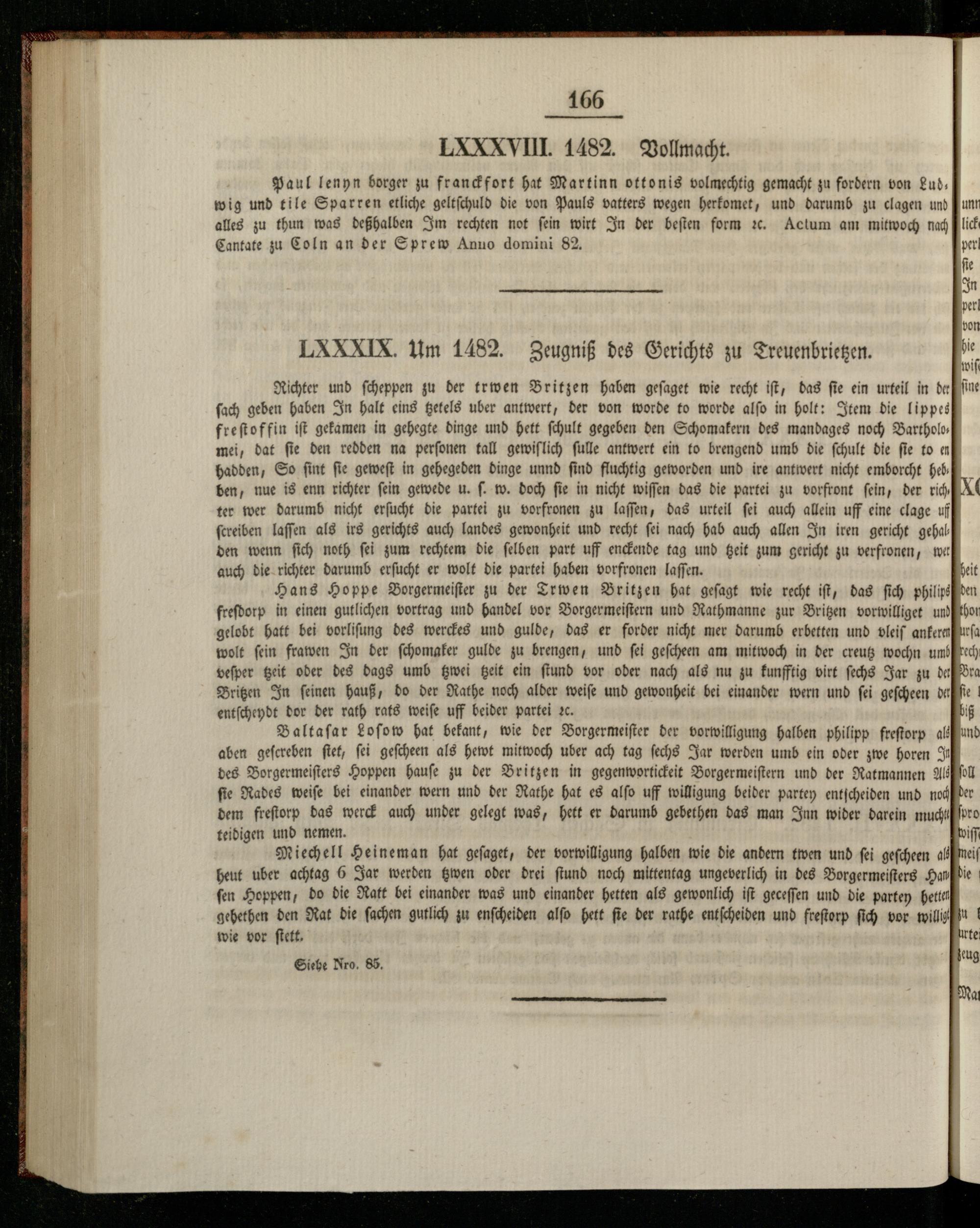 LXXXIX. Um 1482. Zeugniß des Gerichts zu Treuenbrietzen.