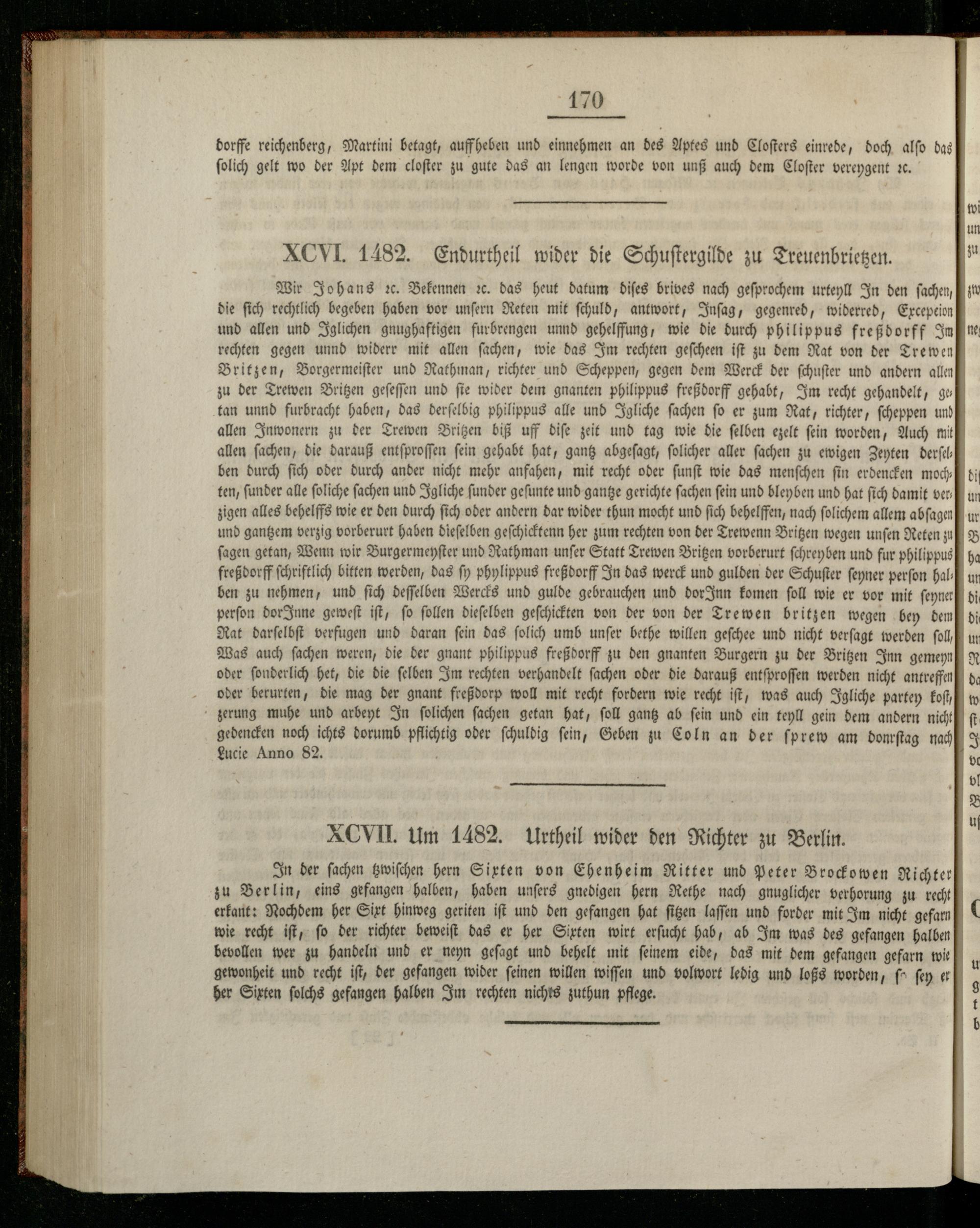 XCVIL um 1482. Urtheil wider den Richter zu Berlin.