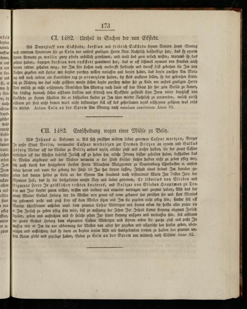 Wir Johans ıc. Bekennen ꝛc. Als ſich zwiſchen unſerm lieben getrewen Caſpar mortzan, Borger In unſer Statt Berlin, vormunder Caſpar witbritzen zur Trewen Britzen an eynem und Gallus hoberg Molner uff der Mollen zu Belitz anders teyls, etlicher zinſe und pechte halben, die der gnant Caſpar witbritzen uff den Mollen daſelbſt Jerlich uff zu heben hat, etliche Irrung bißher gehalten haben, deßhalben das die Mollen abgebrant und der Molner vermeint er der Zinſe ſolicher ſachen halben nicht zu geben pfleg wer, ſich auch durch den hochgeborn furſten Herrn Albrechten Marggraven zu Brandenburg Churfurſten ꝛc. unſern