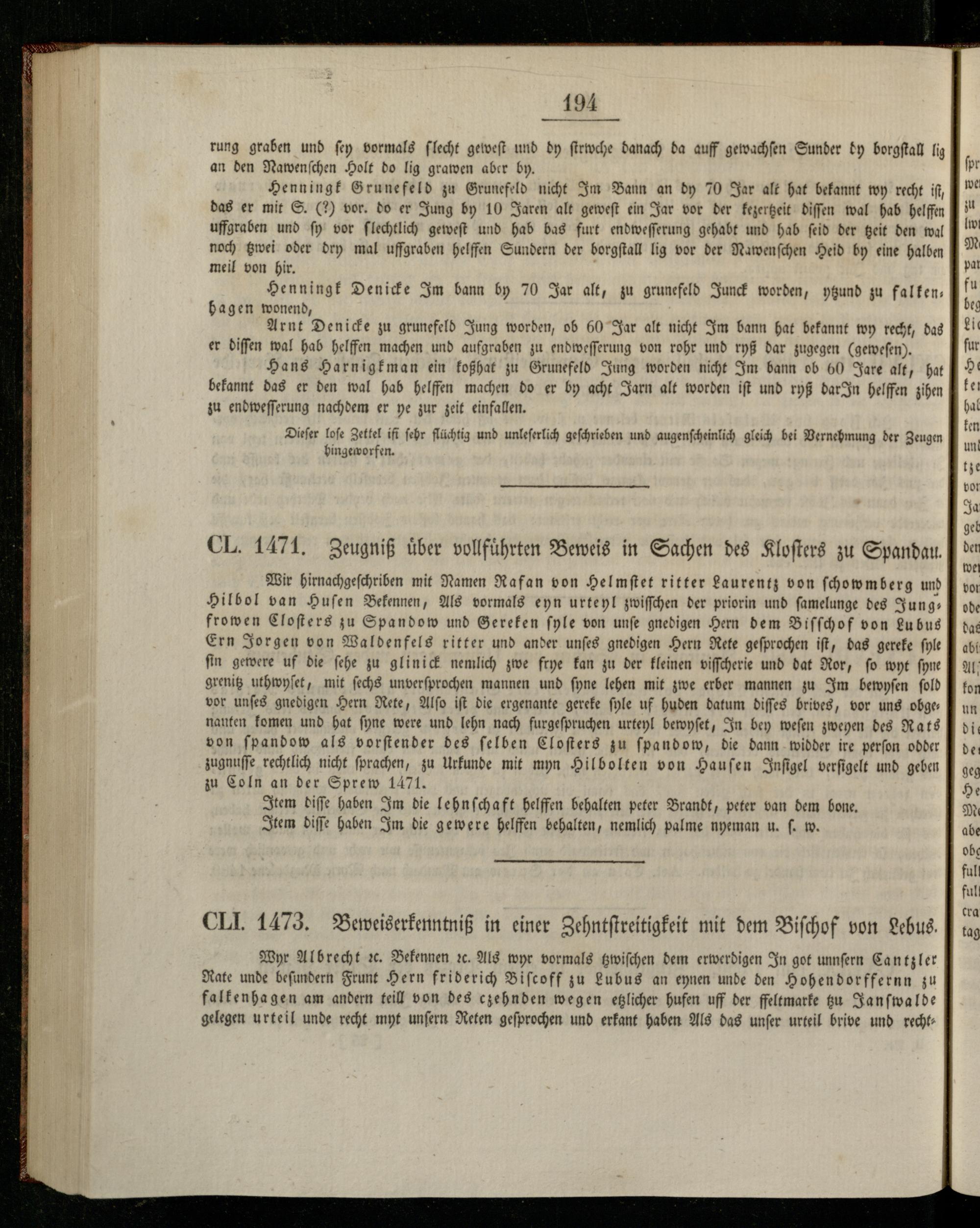 CLI. 1473. Beweiserkenntniß in einer Zehntſtreitigkeit mit dem Biſchof von Lebus.
