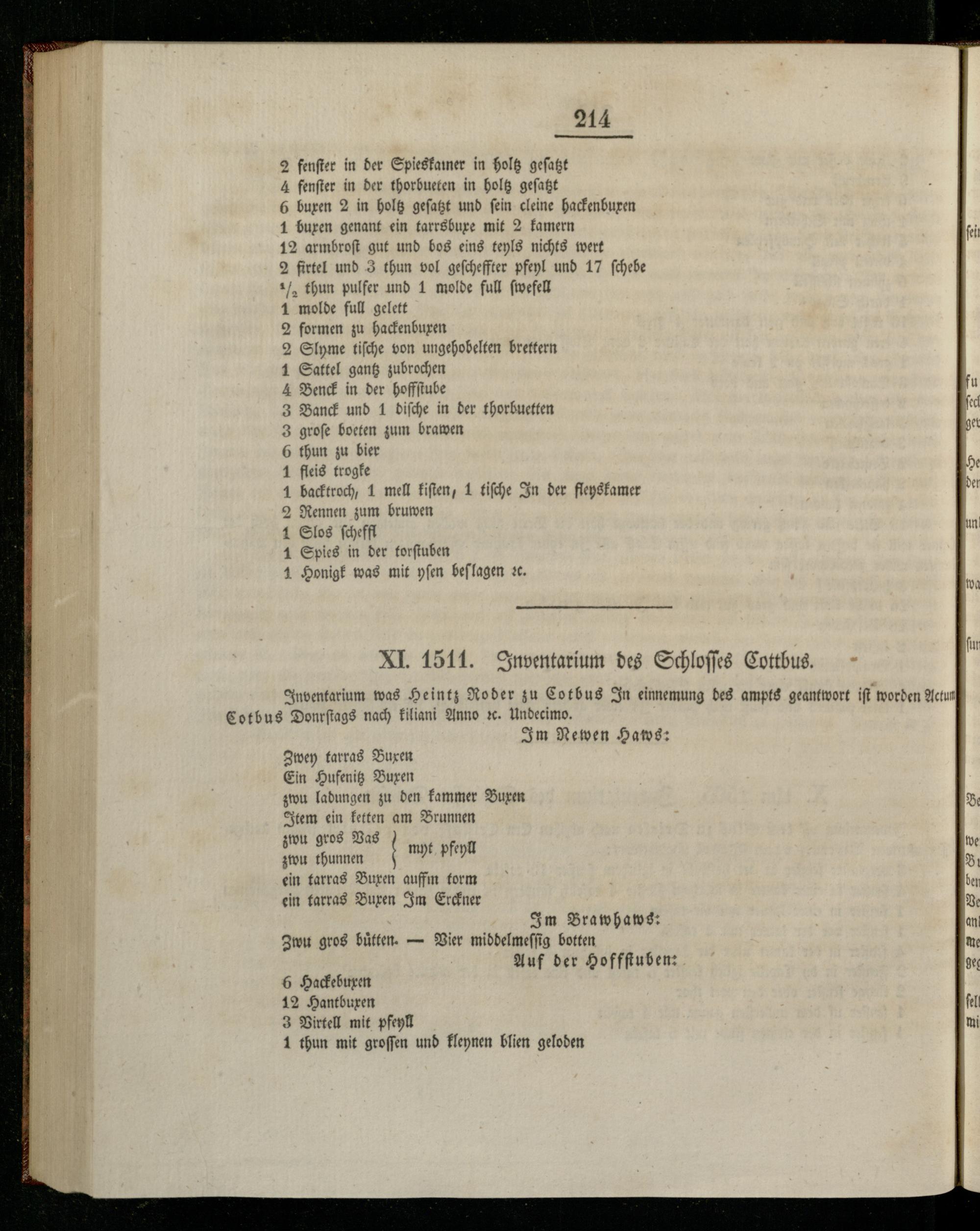 XI. 1511. Inventarium des Schloſſes Cottbus.