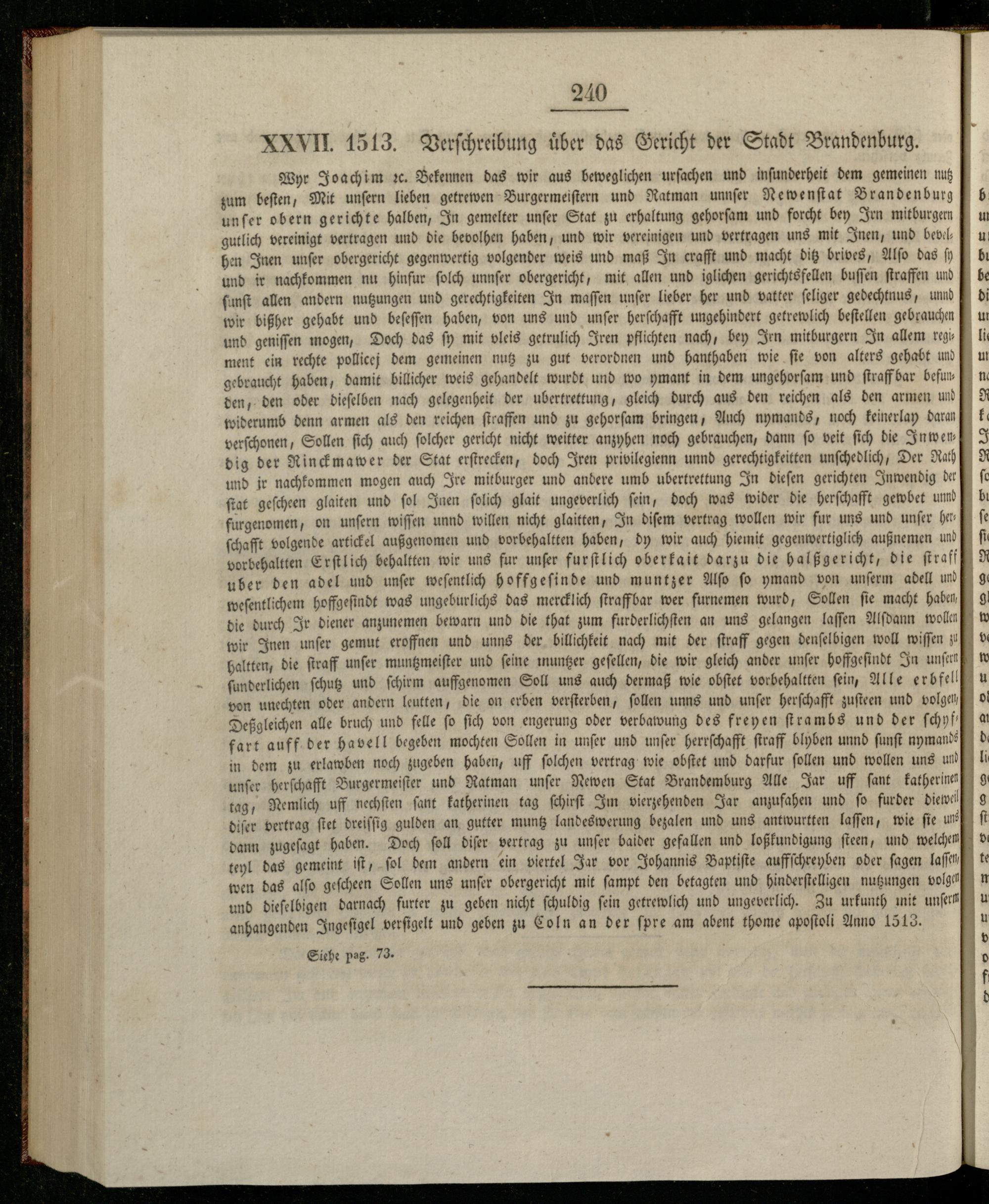 XXVII. 1513. Verſchreibung über das Gericht der Stadt Brandenburg.