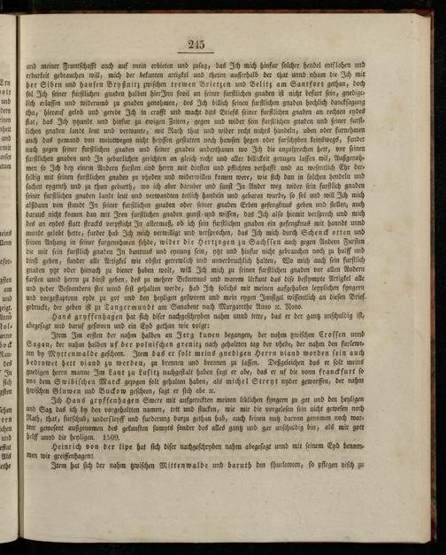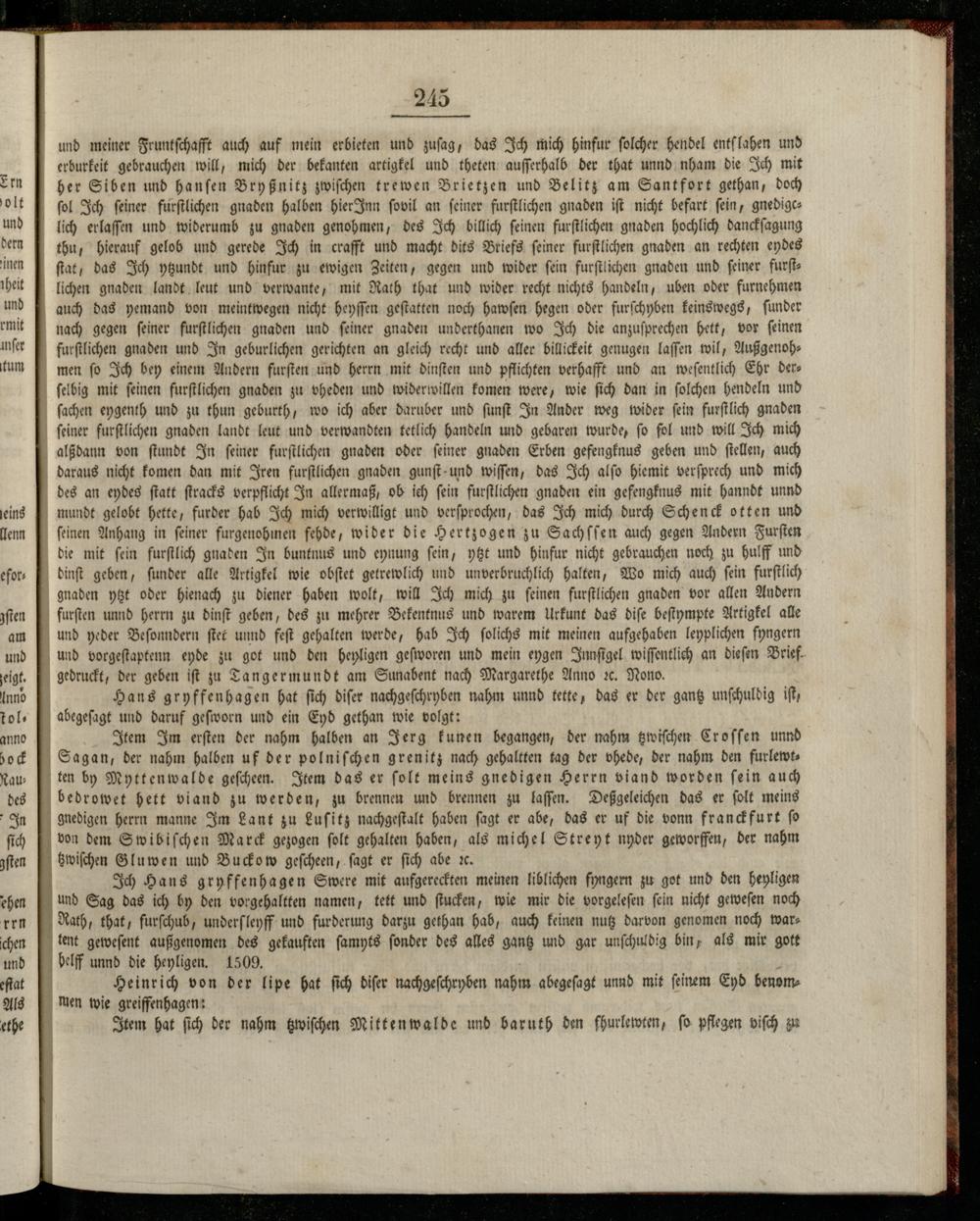 Heinrich von der lipe hat ſich diſer nachgeſchryben nahm abegeſagt unnd mit ſeinem Eyd benommen wie greiffenhagen: Item hat ſich der nahm tzwiſchen Mittenwalde und baruth den fhurlewten, ſo pflegen viſch zu