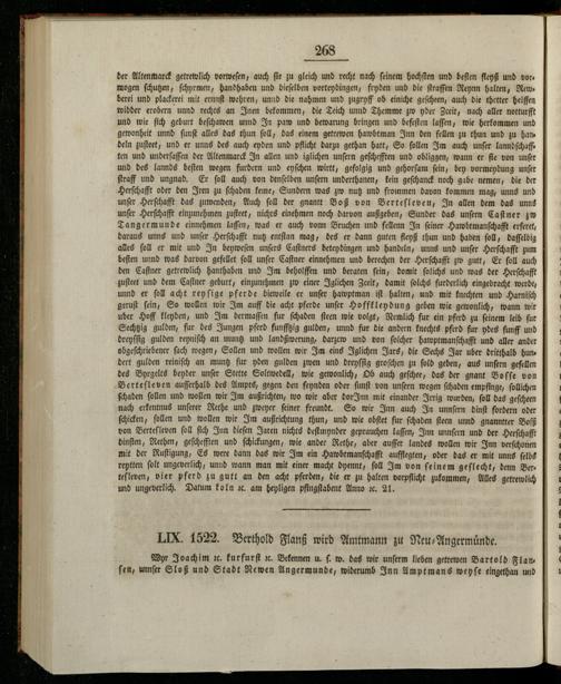 LIX. 1522. Berthold Flanß wird Amtmann zu Neu⸗Angermuͤnde.
