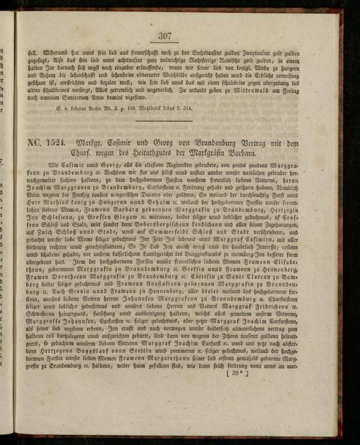 XC. 1524. Markgr. Caſimir und Georg von Brandenburg Vertrag mit dem Churf. wegen des Heirathgutes der Markgraͤfin Barbara.