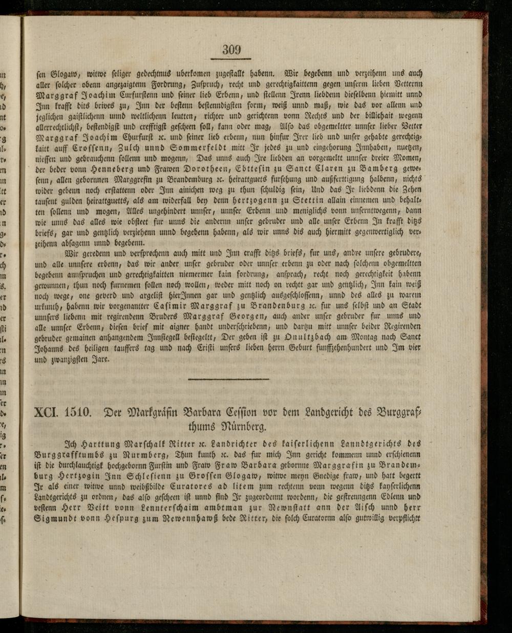 XCI. 1510. Der Markgraͤfin Barbara Ceſſion vor dem Landgericht des Burggrafthums Nürnberg.