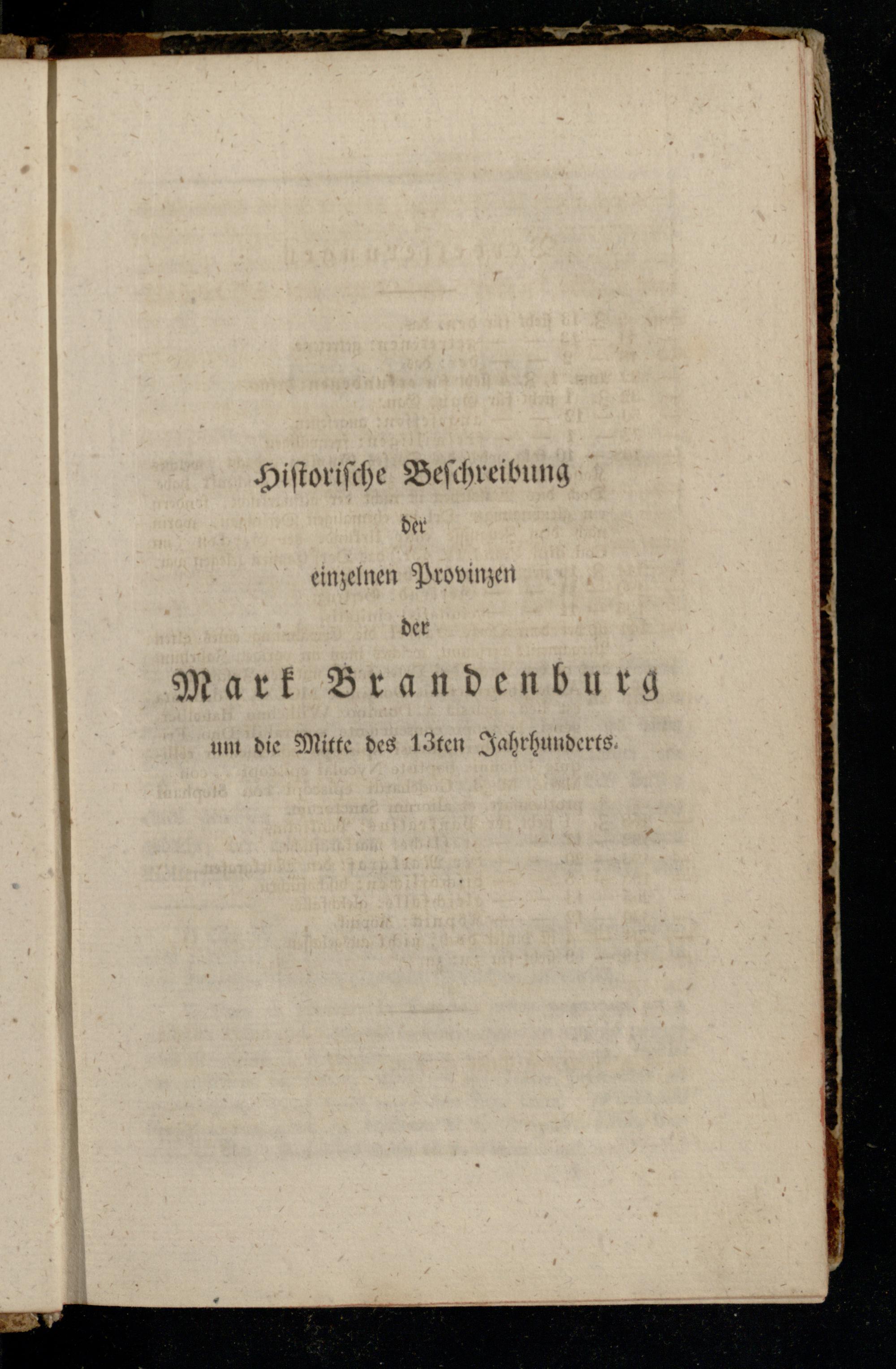 Historische Beschreibung der einzelnen Provinzen der Mark Brandenburg um die Mitte des 13ten Jahrhunderts.