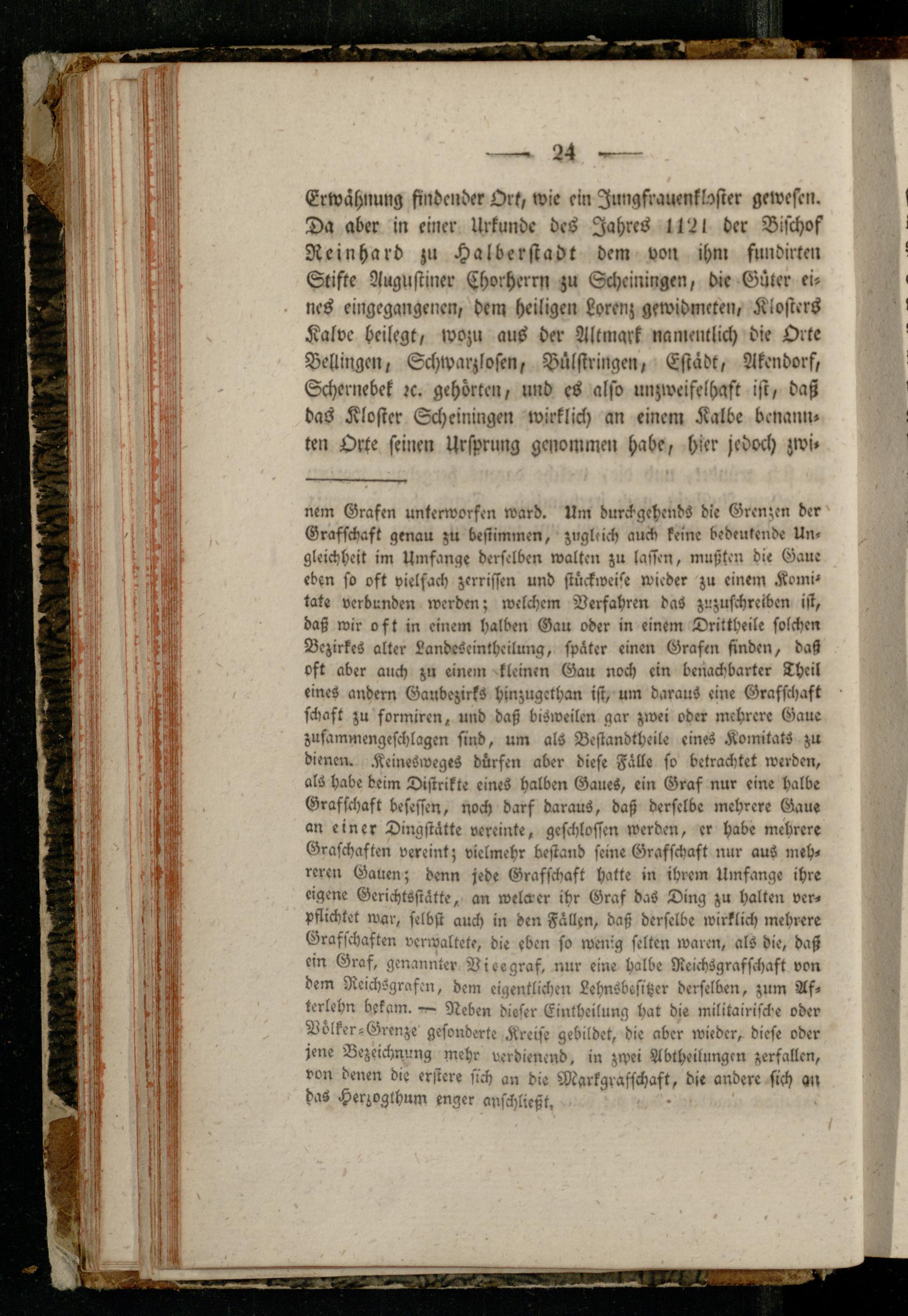 nem Grafen unterworfen ward. Um durchgehends die Grenzen der Grafschaft genau zu bestimmen, zugleich auch keine bedeutende Un- gleichheit im Umfange derselben walten zu lasten, mußten die Gaue eben so oft vielfach zerrissen und stückweise wieder zu einem Komi- tate verbunden werden; welchem Verfahren das zuzuschreiben ist, daß wir oft in einem halben Gau oder in einem Drittheile solchen Bezirkes alter Landeseintheilung, später einen Grafen finden, daß oft aber auch zu einem kleinen Gau noch ein benachbarter Theil eines andern Gaubezirks hinzugethan ist, um daraus eine Grafschaft schaft zu formiren, und daß bisweilen gar zwei oder mehrere Gaue zusammengeschlagen sind, um als Bestandtheile eines Komitats zu dienen. Keinesweges dürfen aber diese Fälle so betrachtet werden, als habe beim Distrikte eines halben Gaues, ein Graf nur eine halbe Grafschaft besessen, noch darf daraus, daß derselbe mehrere Gaue an einer Dingstätte vereinte, geschlossen werden, er habe mehrere Graschaften vereint; vielmehr bestand seine Grafschaft nur aus mehreren Gauen; denn jede Grafschaft hatte in ihrem Umfange ihre eigene Gerichtsstätte, an rvelcrer ihr Graf das Ding zu halten verpachtet war, selbst auch in den Fällen, daß derselbe wirklich mehrere Grafschaften verwaltete, die eben so wenig selten waren, als die, daß ein Graf, genannter Vicegraf, nur eine halbe Reichsgrafschaft von dem Rcichsgrafen, dem eigentlichen Lehnsbesitzer derselben, zum Afterlehn bekam. - Neben dieser Eintheilung hat die militairische oder Volker-Grenze gesonderte Kreise gebildet, die aber wieder, diese oder jene Bezeichnung mehr verdienend, in zwei Abtheilungcn zerfallen, von denen die erster- sich an dis Markgrafschaft, die andere sich an das Herzogthum enger anschließt.