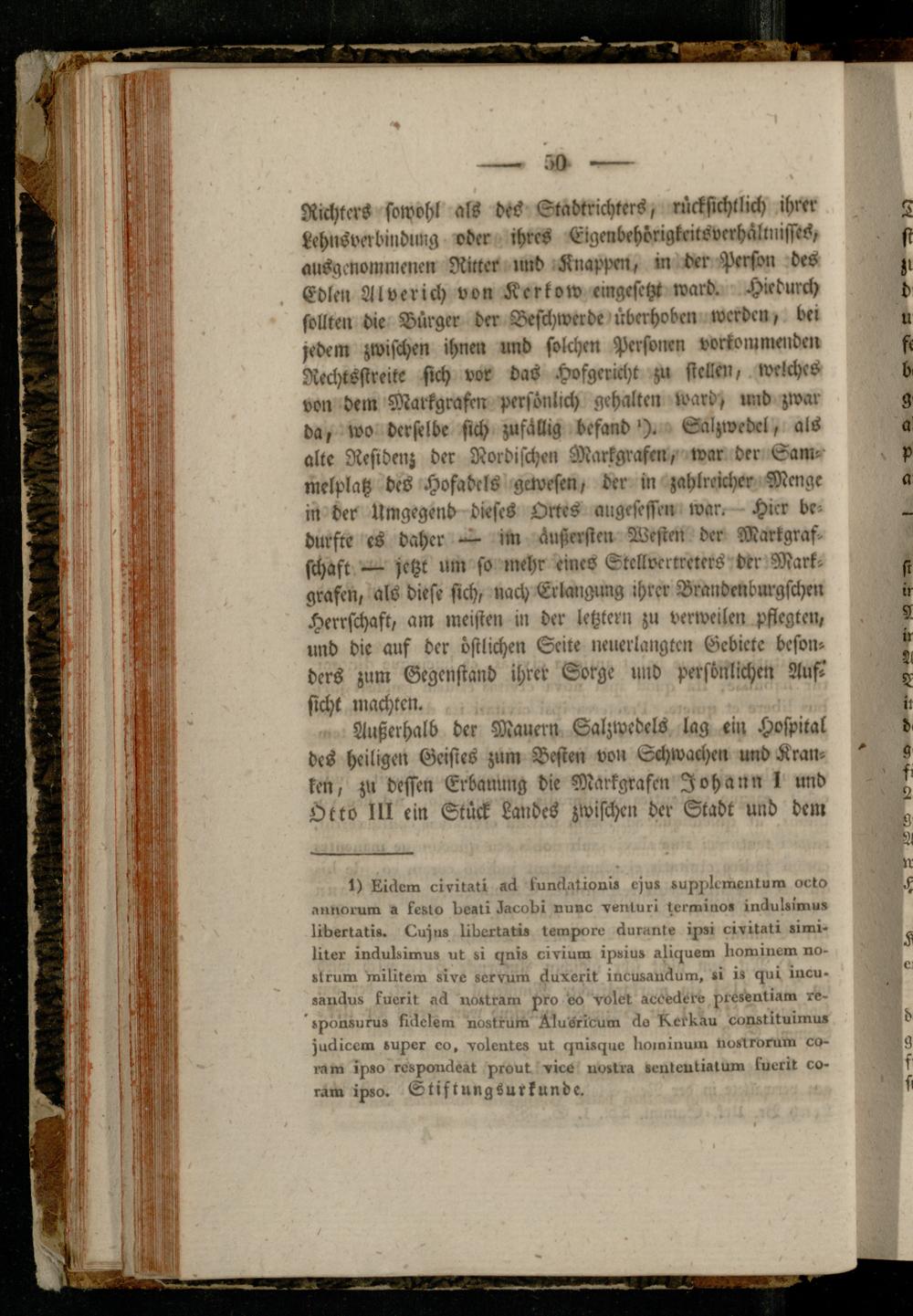 Außerhalb der Mauern Salzwedcls lag ei» Hospital des heiligen Geistes zum Besten von Schwachen und Kranken, zu dessen Erbauung die Markgrafen Johann ! und Otto III ein Stück Landes zwischen der Stadt und dem